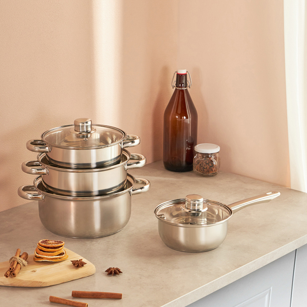 Все еще довольствуетесь приготовлением обедов в старых кастрюлях, где пища медленно варится и пригорает? Обратите внимание на линейку стильной посуды «Джерси». Это универсальная посуда из нержавеющей стали, созданная по последним технологиям. Кастрюли оснащены капсульным дном. Вода закипает быстрее. Ингредиенты не подгорают. Пища готовится равномерно и качественно. Подходит для длительного хранения в холодильнике и тушения блюд в духовке. 4 причины купить кастрюлю из нержавеющей стали серии "Джерси":• многослойное капсульное дно — быстрее готовит, экономит энергию,• крышка из жаропрочного стекла со стальным ободом и отверстием для отвода пара,• подходит для всех типов плит, кроме индукции,• можно мыть в посудомоечной машине. *объем ковша указан при наливании жидкости до краёв. В процессе эксплуатации ручки нагреваются, требуется защита для рук.