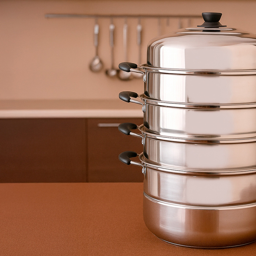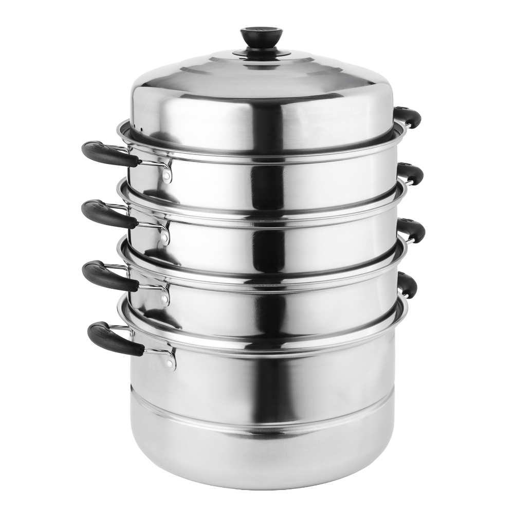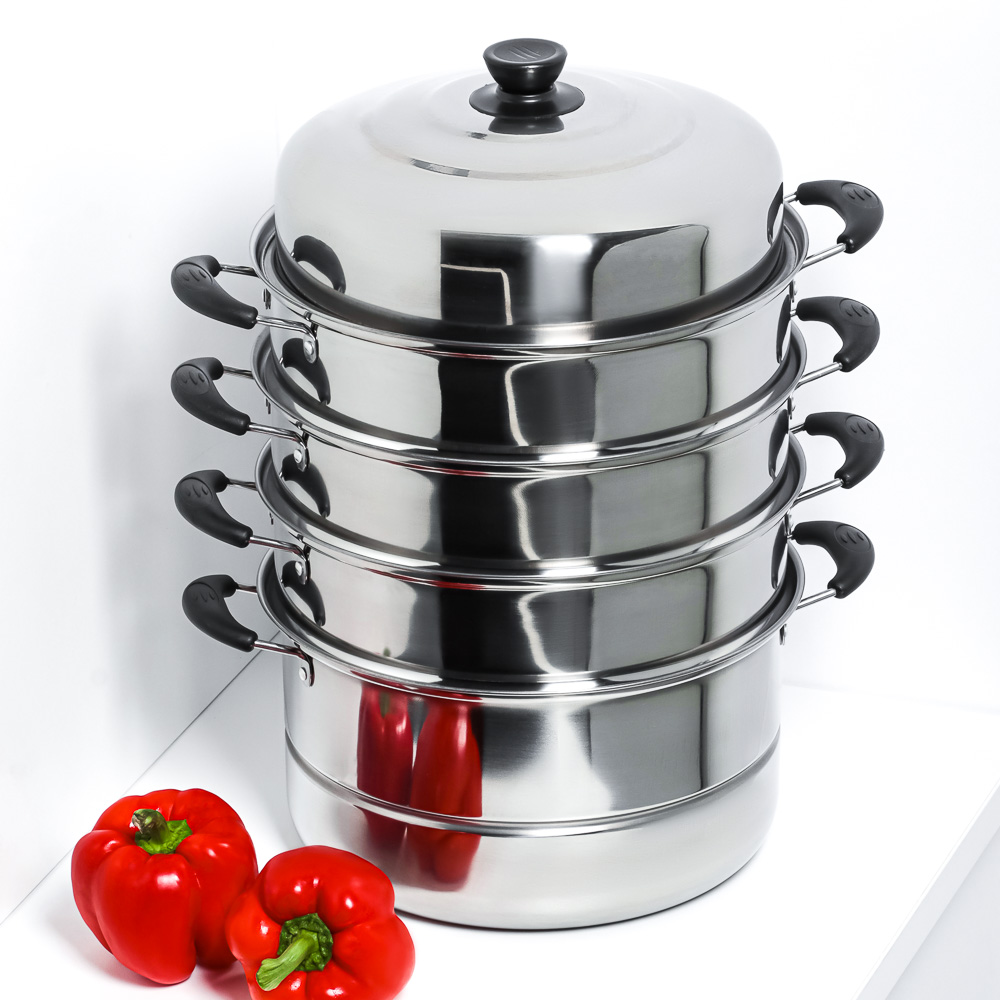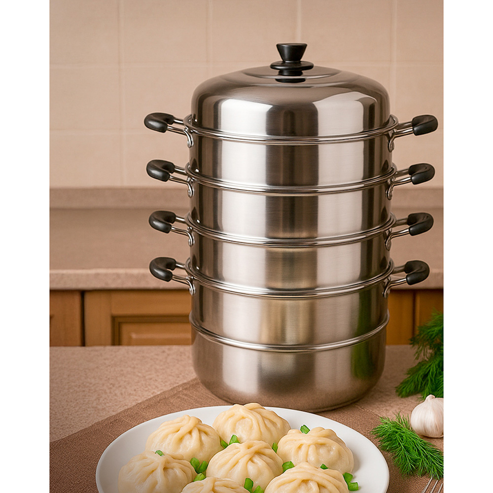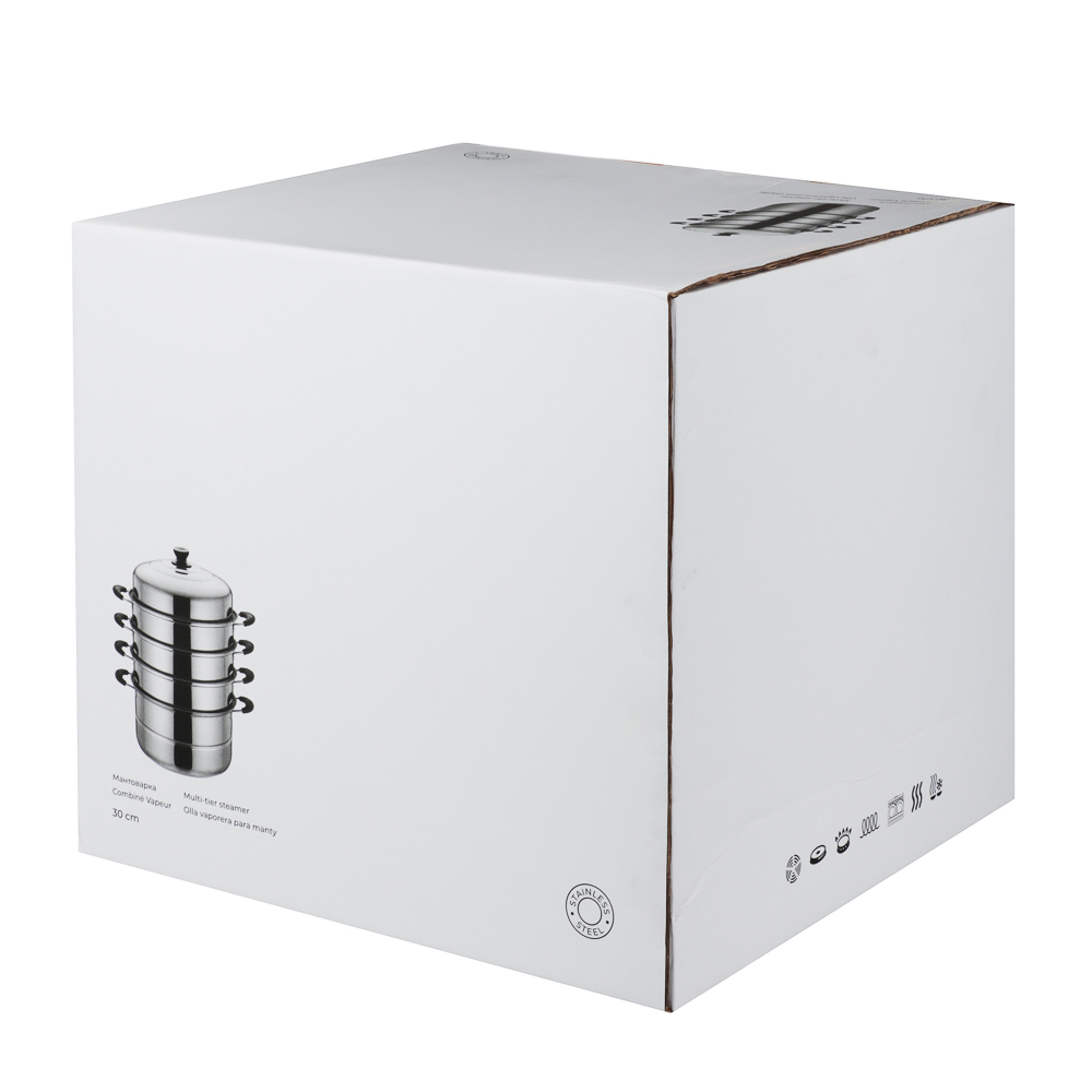 Четырехъярусная мантоварка предназначена для приготовления пищи на пару. Кастрюля состоит из четырех уровней, что позволяет одновременно готовить несколько порций блюд. Главное отличие от пароварки — увеличенные размеры и наличие центрального отверстия для выхода пара, который эффективно насыщает продукты влагой.Преимущества мантоварки:• подходит для создания диетической еды на пару• готовьте манты, вареники и пельмени• нержавеющая сталь не искажает вкус и запах ингредиентов• не деформируется под воздействием высокой температуры• подходит для всех типов плит, включая индукционные.