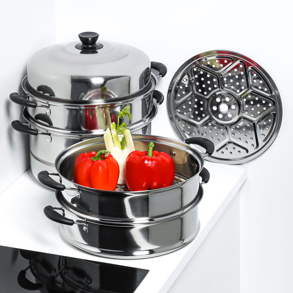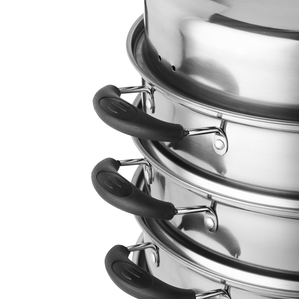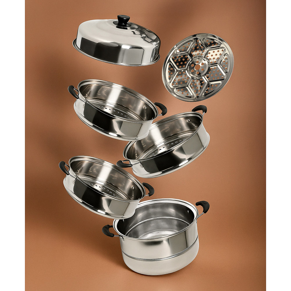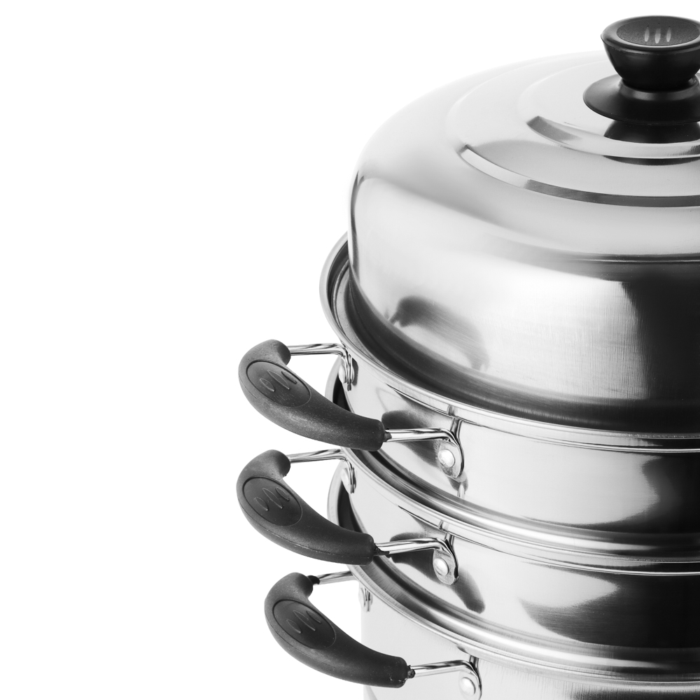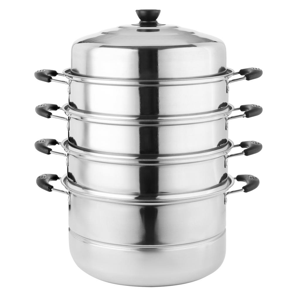 Четырехъярусная мантоварка предназначена для приготовления пищи на пару. Кастрюля состоит из четырех уровней, что позволяет одновременно готовить несколько порций блюд. Главное отличие от пароварки — увеличенные размеры и наличие центрального отверстия для выхода пара, который эффективно насыщает продукты влагой.Преимущества мантоварки:• подходит для создания диетической еды на пару• готовьте манты, вареники и пельмени• нержавеющая сталь не искажает вкус и запах ингредиентов• не деформируется под воздействием высокой температуры• подходит для всех типов плит, включая индукционные.