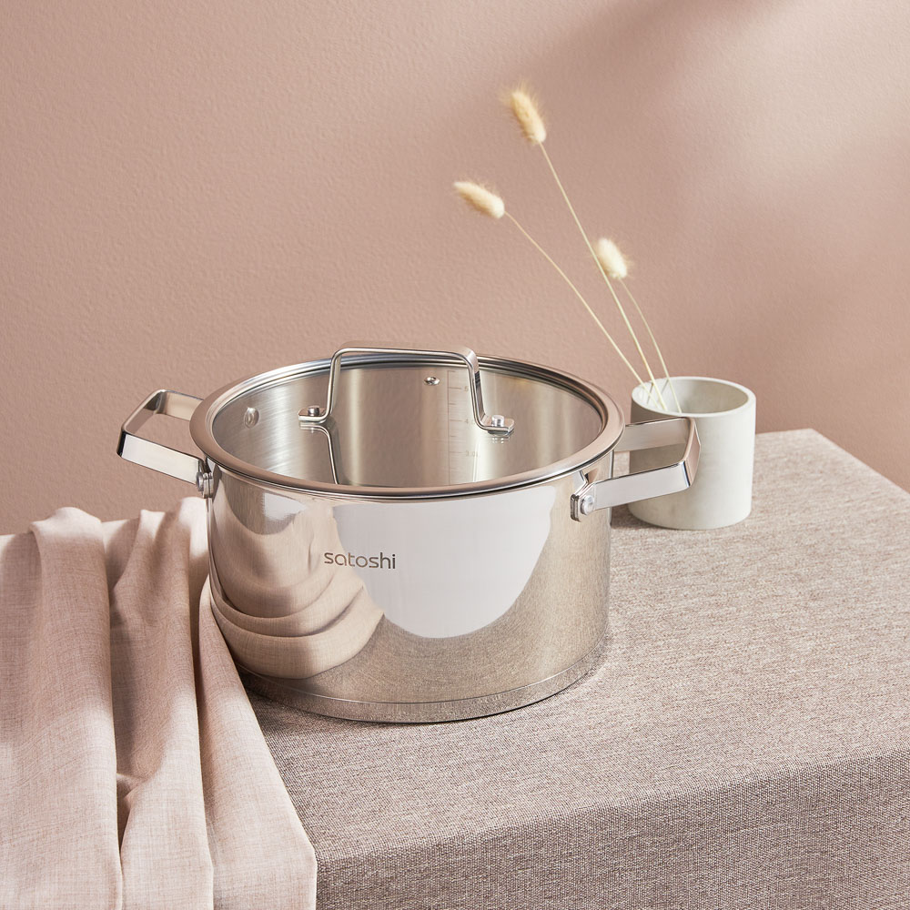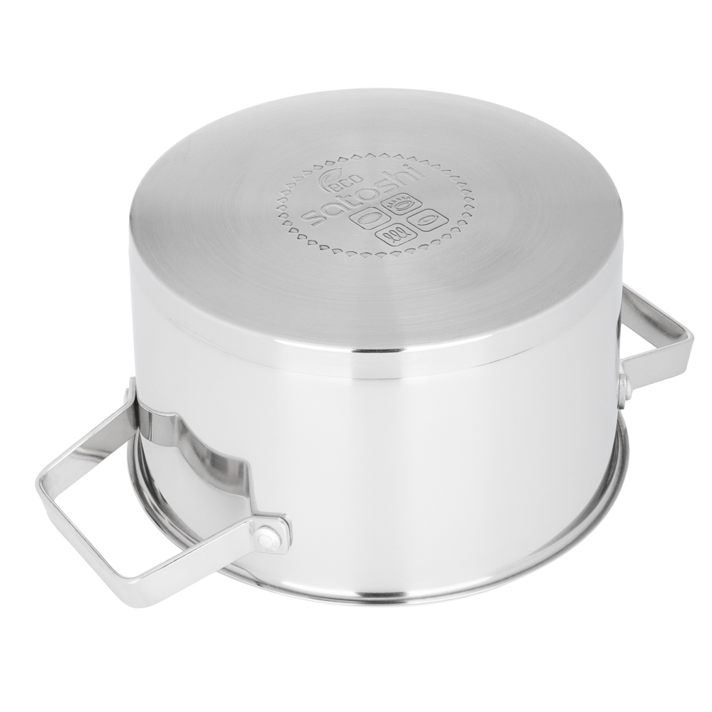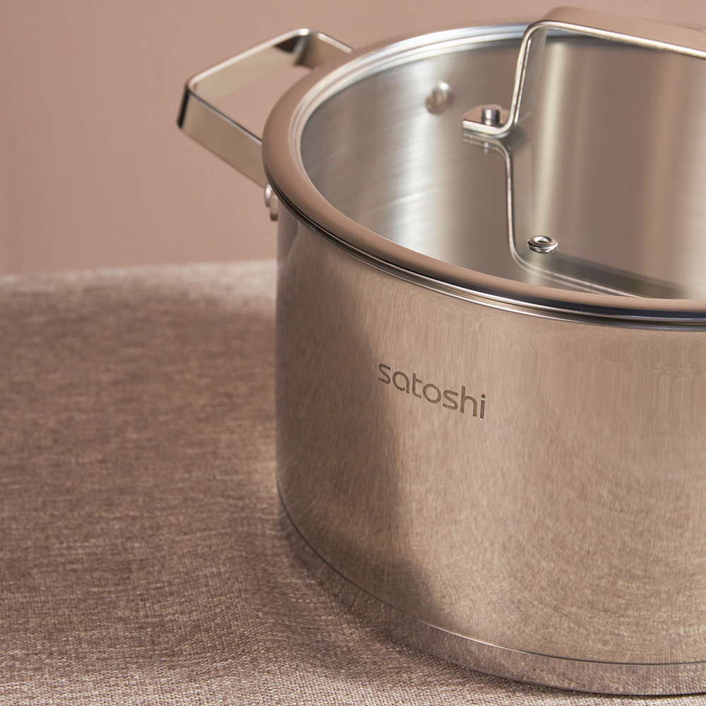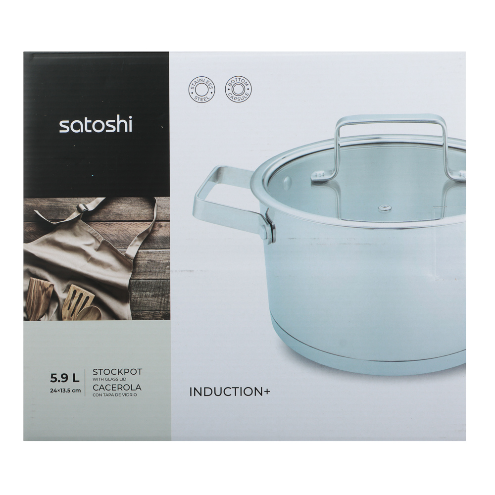Хотите обновить посуду для приготовления еды? Кастрюля Satoshi из коллекции Шато объемом 5,9 л со стеклянной крышкой сочетает в себе современные технологии и стильный дизайн. Это универсальная посуда из нержавеющей стали, созданная по последним технологиям. Посуда из нержавеющей стали не окисляется, материал не впитывает и не выделяет запахи, что положительно влияет на вкус пищи. Кастрюля Satoshi оснащена капсульным дном. Вода закипает быстрее. Ингредиенты не прилипают, не подгорают. Пища готовится равномерно и качественно. Кастрюля оснащена ручками, которые всегда остаются холодными. Подходит для всех типов плит, включая индукцию.Размер 24х13,5 см.