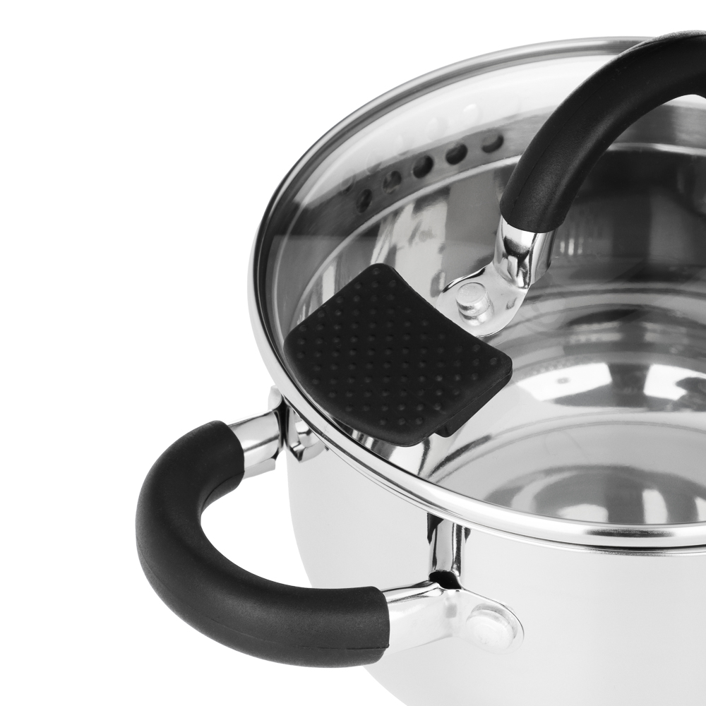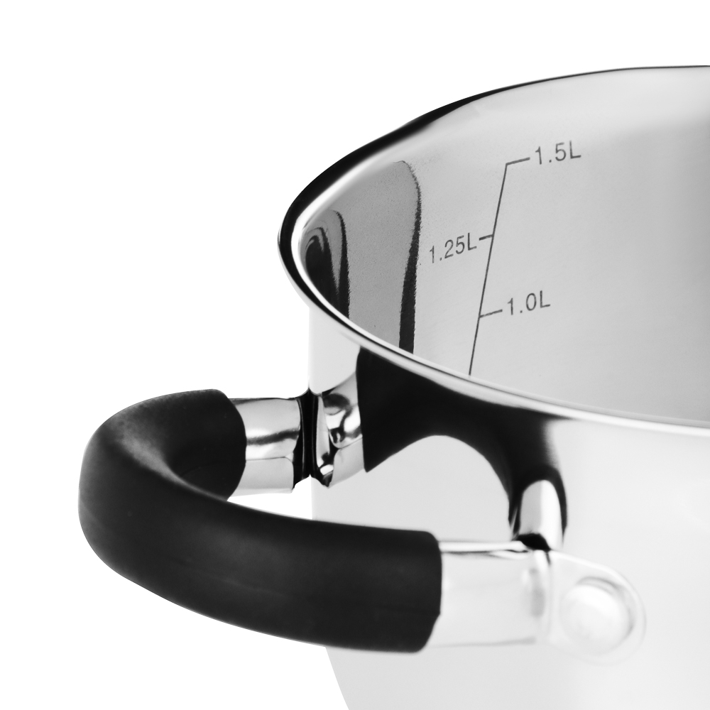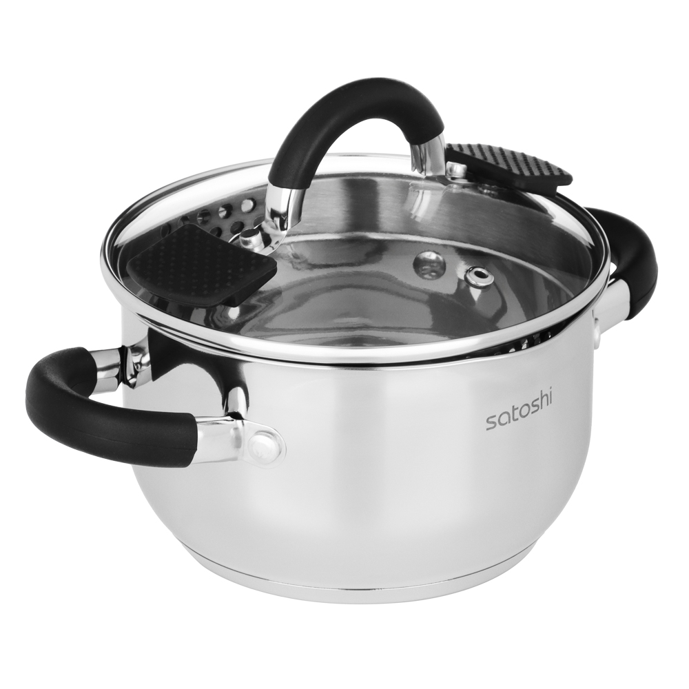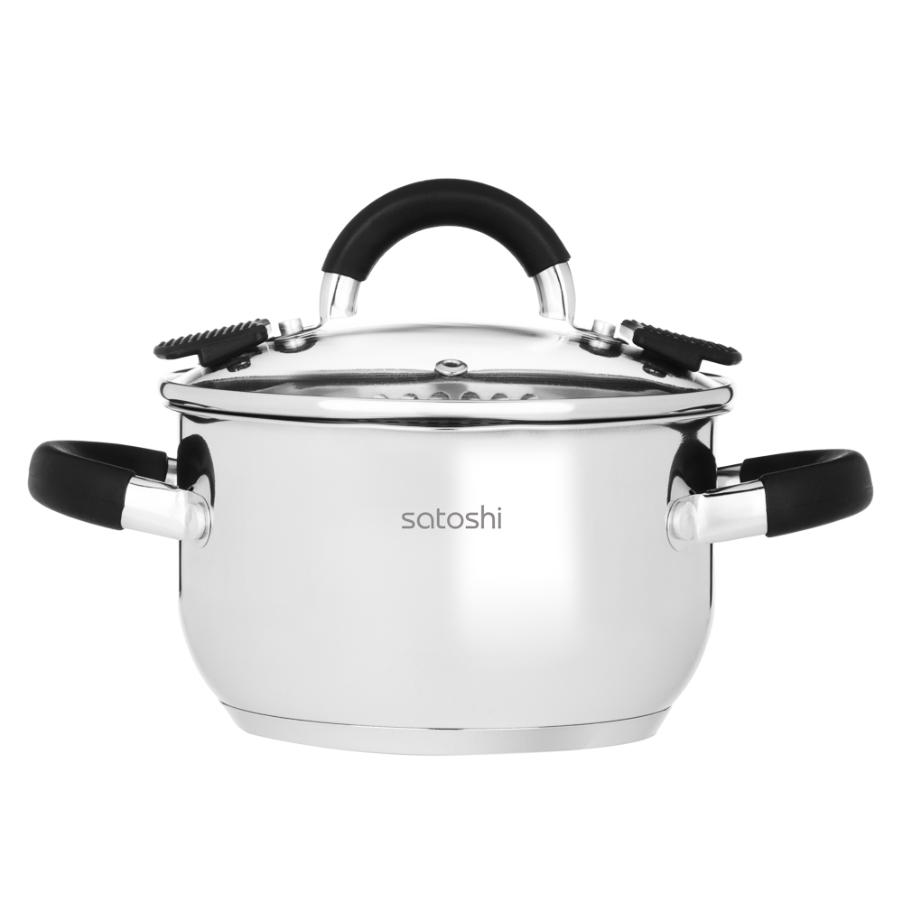 Кастрюля SATOSHI «Арбон» 16х9,5 см, объем 1,8 л, со стеклянной крышкой с паровыпуском – это прекрасная помощница для приготовления первых блюд, варки гарниров и компотов. Изготовлена из высококачественной нержавеющей стали, имеет толстые стенки, устойчивые к деформации. Пятислойное капсульное дно обеспечивает равномерное распределение тепла, быстро нагревается и долго сохраняет температуру. Предусмотрена мерная шкала для замера точных объемов. Силиконовые протекторы ручек защищают руки от ожогов. Держатели на крышке для удобства слива жидкости и специальные отверстия для слива делают процесс использования максимально комфортным и эффективным, позволяя сливать лишнюю жидкость без попадания продуктов в раковину.