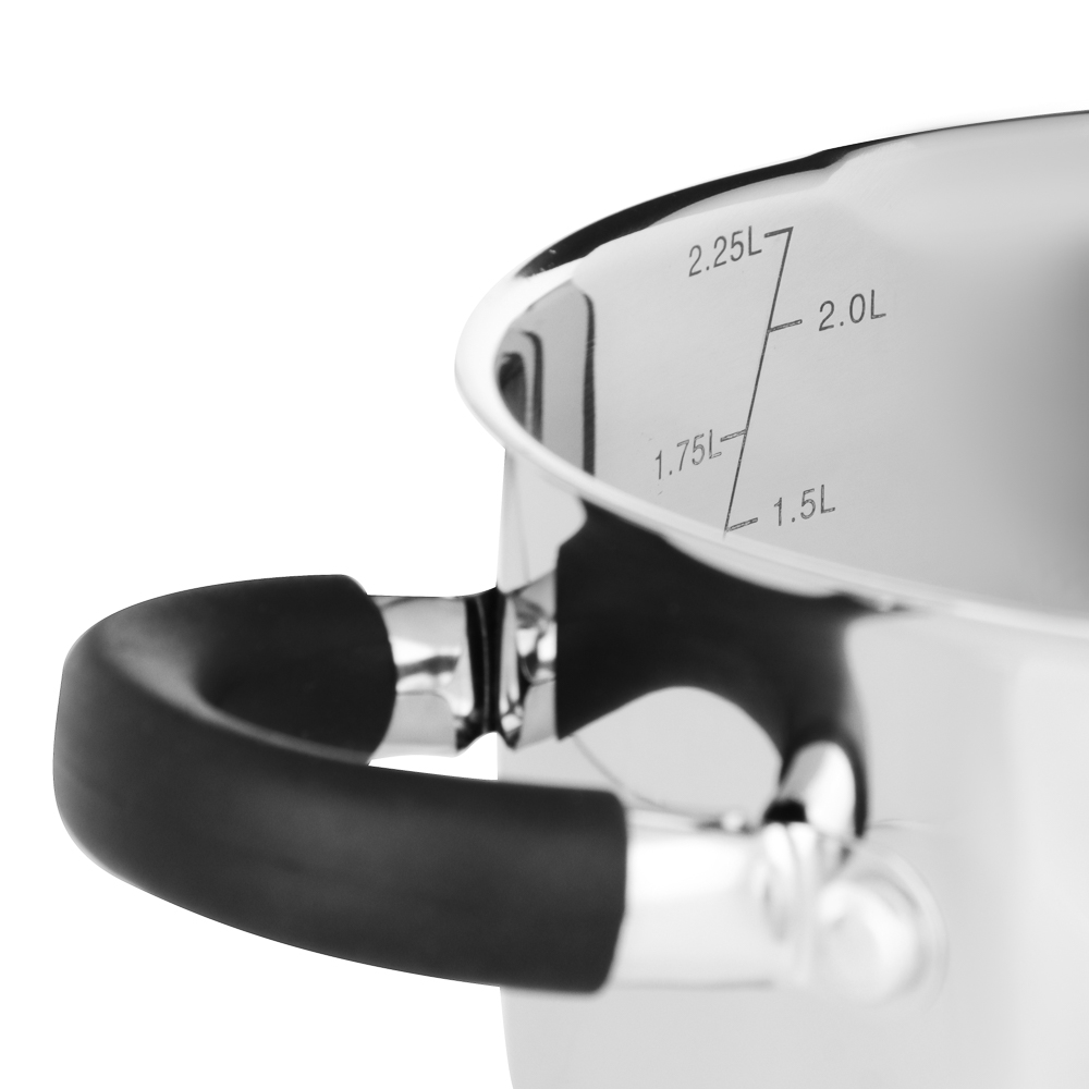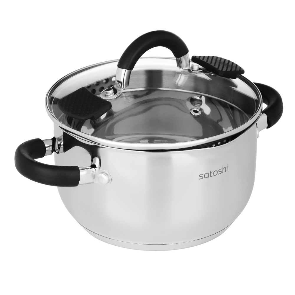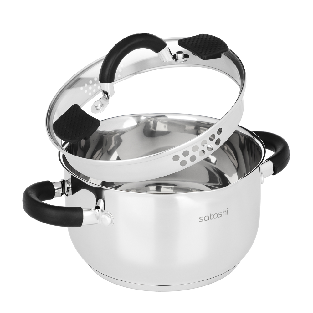 Кастрюля SATOSHI «Арбон» 18х10,5 см, объем 2,5 л, со стеклянной крышкой с паровыпуском – это прекрасная помощница для приготовления первых блюд, варки гарниров и компотов. Изготовлена из высококачественной нержавеющей стали, имеет толстые стенки, устойчивые к деформации. Пятислойное капсульное дно обеспечивает равномерное распределение тепла, быстро нагревается и долго сохраняет температуру. Предусмотрена мерная шкала для замера точных объемов. Силиконовые протекторы ручек защищают руки от ожогов. Держатели на крышке для удобства слива жидкости и специальные отверстия для слива делают процесс использования максимально комфортным и эффективным, позволяя сливать лишнюю жидкость без попадания продуктов в раковину.
