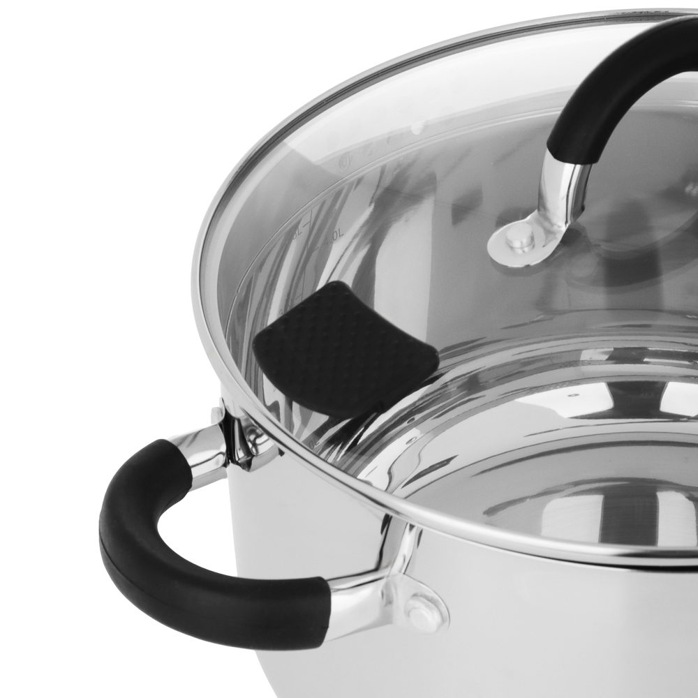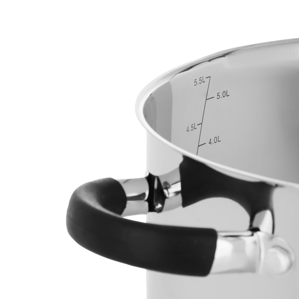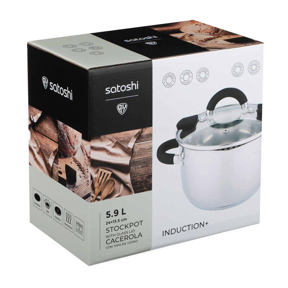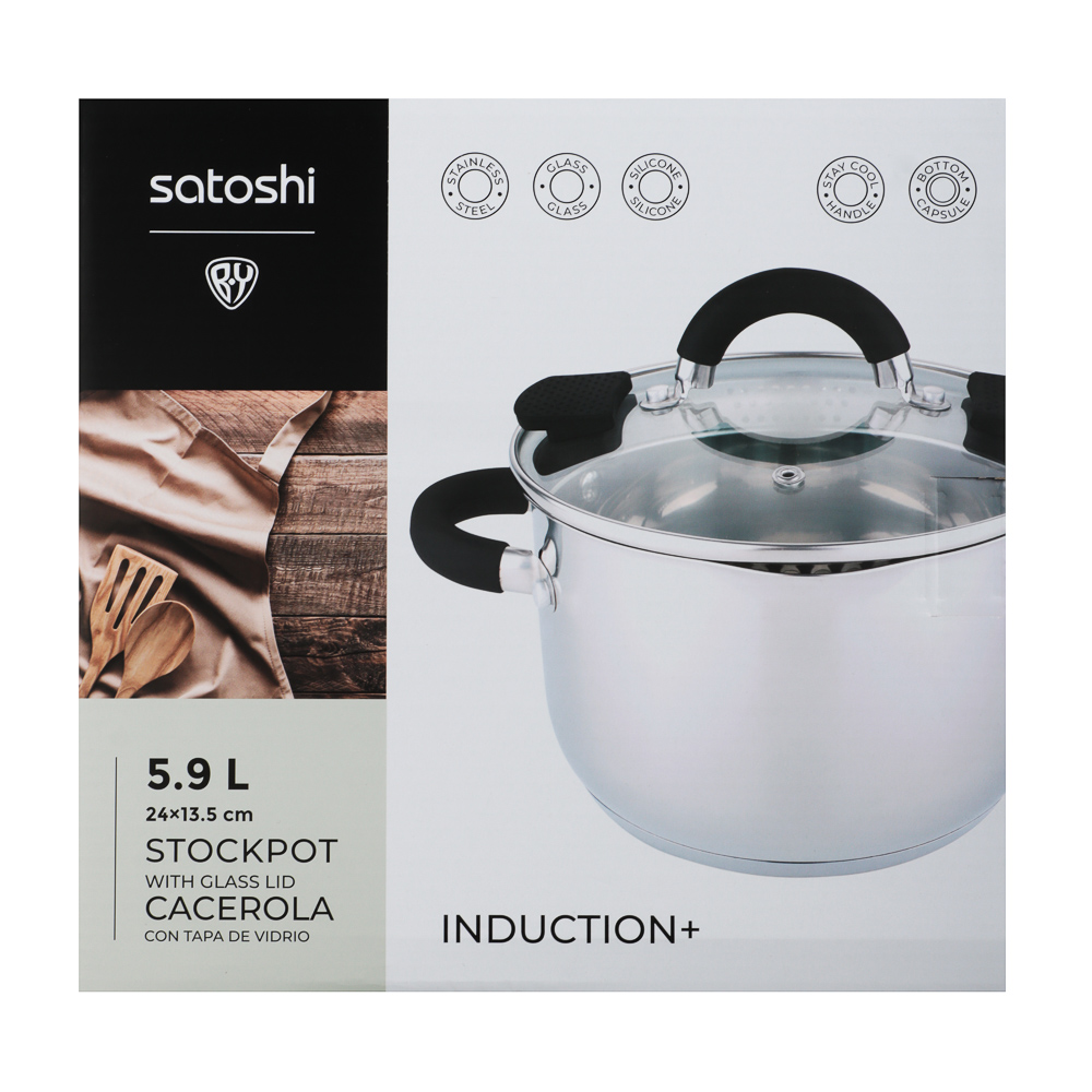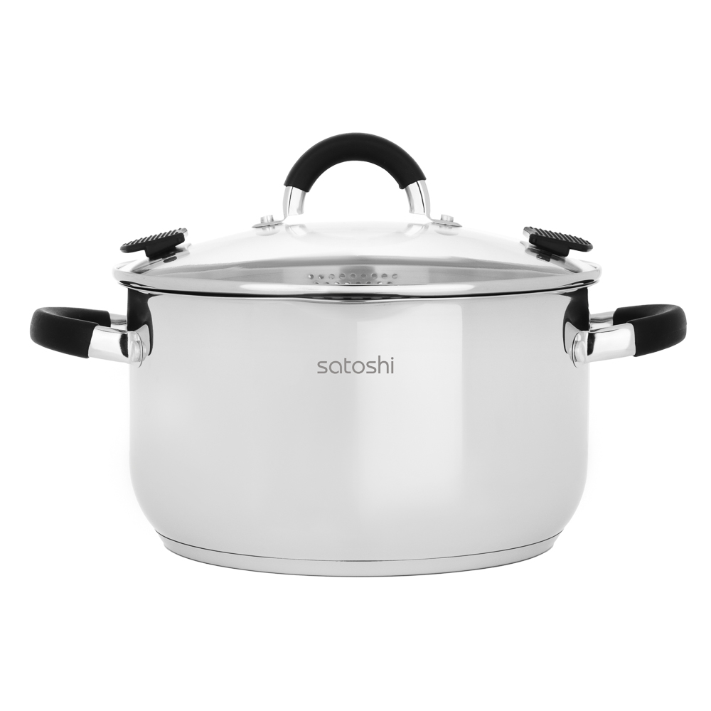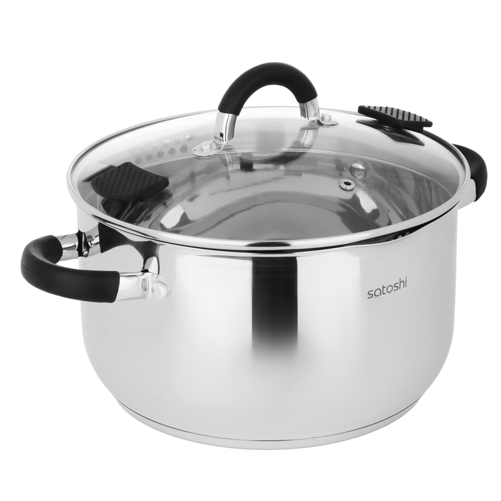 Кастрюля SATOSHI «Арбон» размером 24х13,5 см и объемом 5,9 л, со стеклянной крышкой с паровыпуском – это прекрасная помощница для приготовления первых блюд, варки гарниров и компотов. Изготовлена из высококачественной нержавеющей стали, имеет толстые стенки, устойчивые к деформации. Пятислойное капсульное дно обеспечивает равномерное распределение тепла, быстро нагревается и долго сохраняет температуру. Предусмотрена мерная шкала для замера точных объемов. Силиконовые протекторы ручек защищают руки от ожогов. Держатели на крышке для удобства слива жидкости и специальные отверстия для слива делают процесс использования максимально комфортным и эффективным, позволяя сливать лишнюю жидкость без попадания продуктов в раковину.
