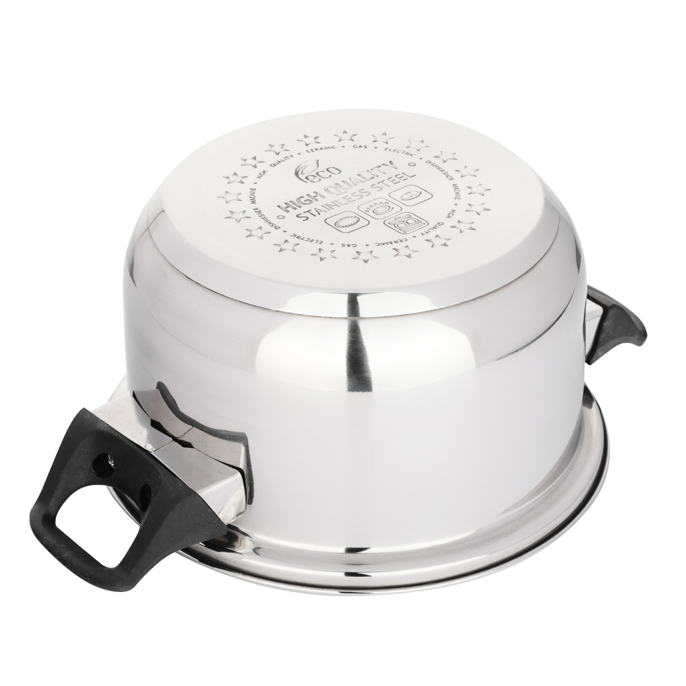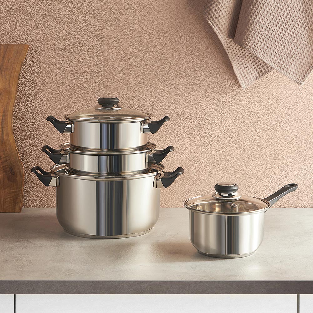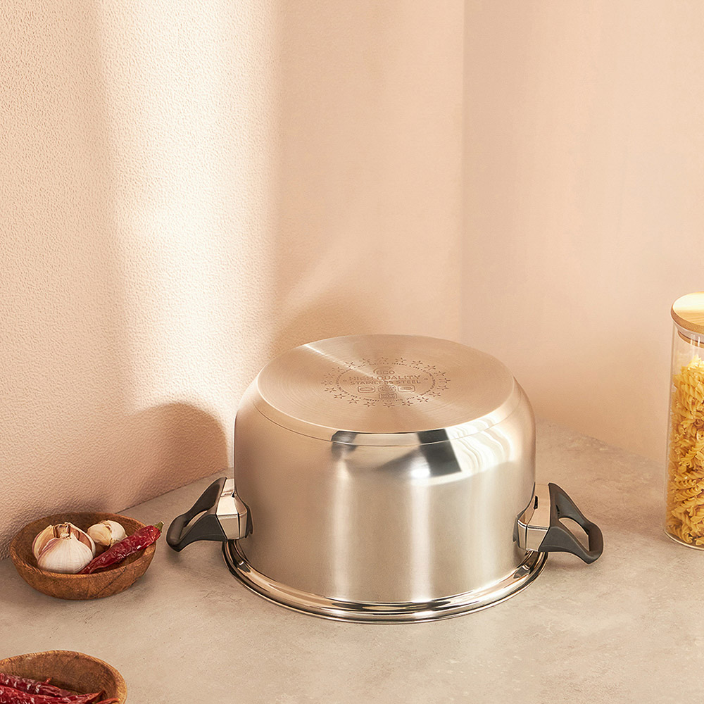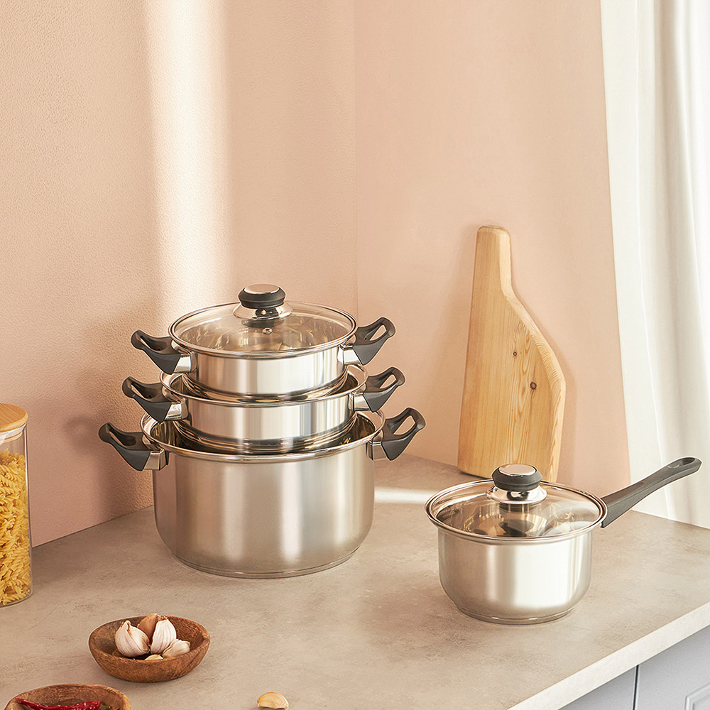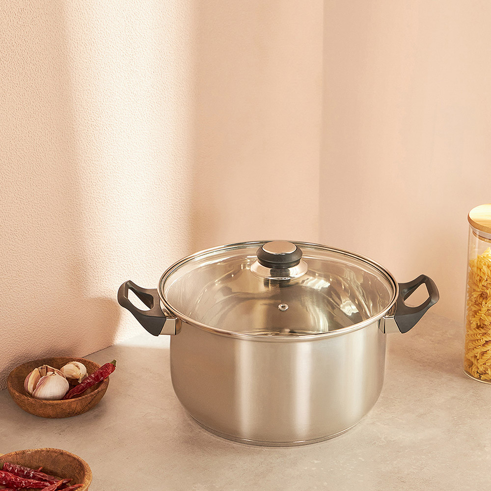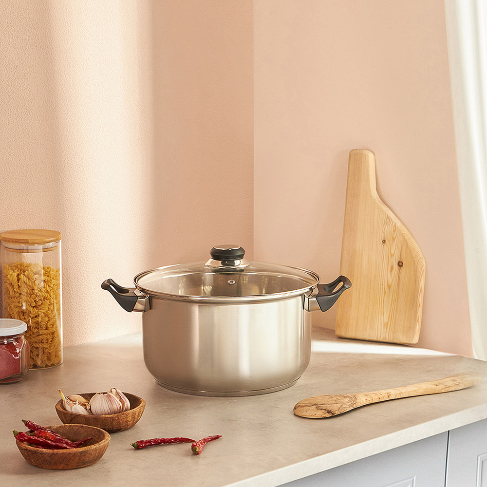 Все еще довольствуетесь приготовлением обедов в старых кастрюлях, где пища медленно варится и пригорает? Обратите внимание на линейку стильной посуды «Стрейтон». Это универсальная посуда из нержавеющей стали, созданная по последним технологиям. Кастрюли оснащены капсульным дном. Вода закипает быстрее. Ингредиенты не подгорают. Пища готовится равномерно и качественно. Подходит для длительного хранения в холодильнике и тушения блюд в духовке. Кастрюля имеет бакелитовые ручки, которые не нагреваются.Причины купить кастрюлю из нержавеющей стали VETTA "Стрейтон":• капсульное дно — быстрее готовит, экономит энергию,• крышка из жаропрочного стекла со стальным ободом и отверстием для отвода пара,• можно ставить в холодильник, • размер 18х10,5 см, объем 2,1 л,• можно мыть в посудомоечных машинах.