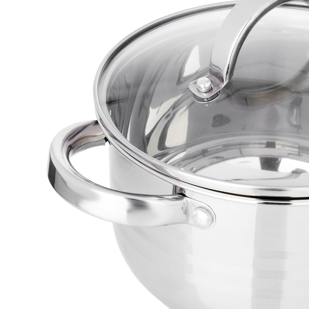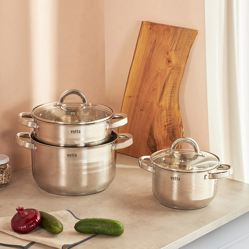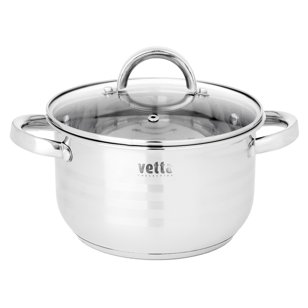 Кастрюля VETTA Фултон объемом 2,1 л и размером 18х10,5 см станет вашим надежным помощником на кухне. Изготовленная из нержавеющей стали, она устойчива к коррозии, долговечна и легко очищается. Капсульное дно с теплораспределительным слоем обеспечивает равномерный нагрев и позволяет использовать кастрюлю на всех типах плит, включая индукционные. Стеклянная крышка с регулируемым пароотводом помогает контролировать влажность внутри посуды, что особенно важно при приготовлении изысканных блюд. Прозрачная крышка также позволяет наблюдать за процессом готовки, сохраняя аромат блюд. Удобные ручки надежно закреплены, однако они нагреваются во время готовки — рекомендуется использовать прихватки для безопасности.Кастрюля легко моется вручную или в посудомоечной машине, что делает уход за ней максимально простым. Стильная, практичная и функциональная, посуда VETTA Фултон идеально подходит как для ежедневного использования, так и для особых кулинарных экспериментов!