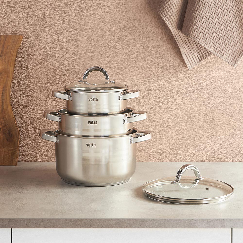 Кастрюля VETTA Фултон объемом 4 л и размером 22х12,5 см станет вашим надежным помощником на кухне. Изготовленная из нержавеющей стали, она устойчива к коррозии, долговечна и легко очищается. Капсульное дно с теплораспределительным слоем обеспечивает равномерный нагрев и позволяет использовать кастрюлю на всех типах плит, включая индукционные. Стеклянная крышка с регулируемым пароотводом помогает контролировать влажность внутри посуды, что особенно важно при приготовлении изысканных блюд. Прозрачная крышка также позволяет наблюдать за процессом готовки, сохраняя аромат блюд. Удобные ручки надежно закреплены, однако они нагреваются во время готовки — рекомендуется использовать прихватки для безопасности.Кастрюля легко моется вручную или в посудомоечной машине, что делает уход за ней максимально простым. Стильная, практичная и функциональная, посуда VETTA Фултон идеально подходит как для ежедневного использования, так и для особых кулинарных экспериментов!
