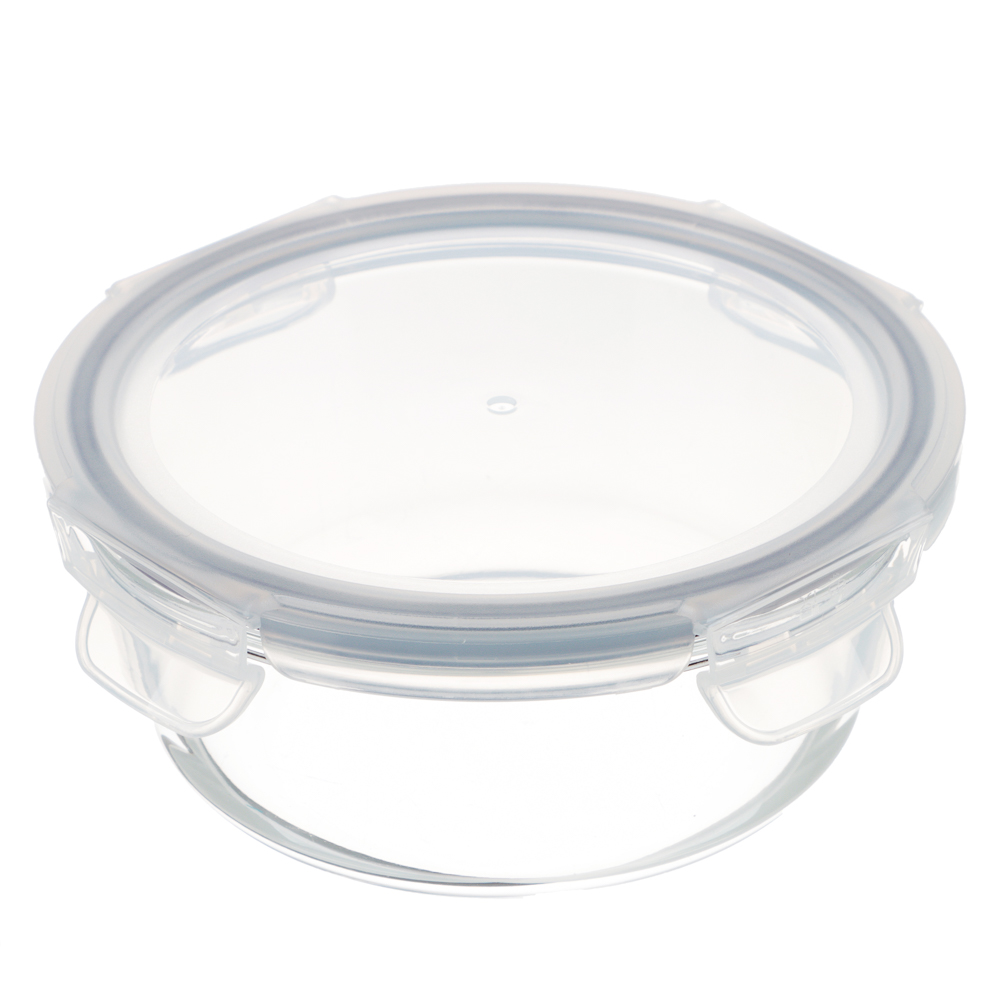 Готовую еду предпочтительно хранить в стеклянной посуде. Контейнер для продуктов VETTA 600 мл на защелках изготовлен из толстого жаропрочного стекла и оснащен плотной крышкой, которая минимизирует контакт пищи с воздухом, сохраняя свежесть и вкус еды максимально долго. Круглая форма и оптимальная глубина позволяет хранить как жидкую пищу, так и вторые блюда.