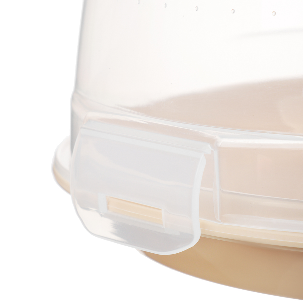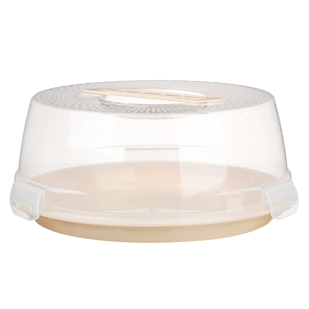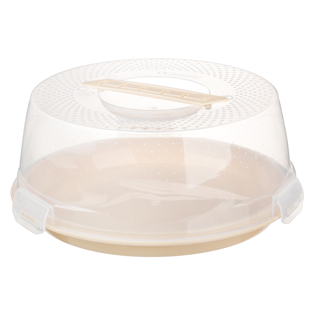 Блинница-тортовница, диаметр 28,5 см – это пластиковая посуда с прозрачной крышкой для хранения блинов, оладьев, тортов или пирожных. Имеет удобную конструкцию с плотной крышкой с застежками-защелками, которая не соскальзывает и не смещается при перемещении. Отверстия в крышке обеспечивают вентиляцию, не давая продуктам задохнуться и в то же время препятствуют заветриванию и высыханию, сохраняя кондитерские изделия свежими на протяжении всего срока хранения.