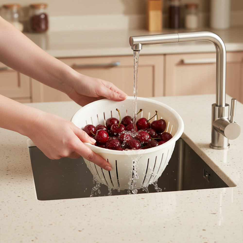 Дуршлаг Stockholm диаметром 22 см выполнен из прочного, безопасного пластика, устойчивого к повседневному использованию и перепадам температур. Подходит для отваривания и промывания овощей, фруктов, макарон или риса. Две удобные ручки по бокам позволяют легко поднимать и переносить дуршлаг. Высокие стенки предотвращают разбрызгивание воды при ополаскивании. Тонкие вертикальные щели обеспечивают быстрое стекание воды, а гладкая поверхность легко моется и не впитывает запахи. Нейтральный цвет и лаконичная форма отлично впишутся в любой интерьер кухни.