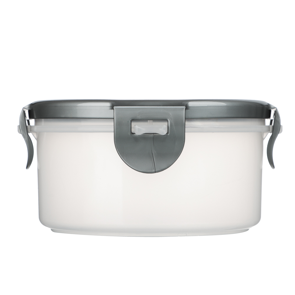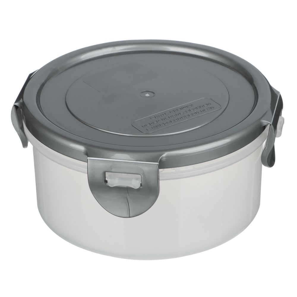 Контейнер герметичный круглый для СВЧ с защелками объемом 0,35 л – емкость для хранения и разогрева еды, которая значительно продлевает хранение готового блюда. Высококачественный пищевой пластик не выделяет вредных компонентов, а антибактериальный компонент замедляет рост и размножение микроорганизмов, в результате продукты хранятся до двух раз дольше. Силиконовый уплотнитель и специальные зажимы препятствуют доступу кислорода внутрь контейнера, за счет чего достигается 100%-ная герметичность. Подходит для СВЧ-печи и морозильной камеры.