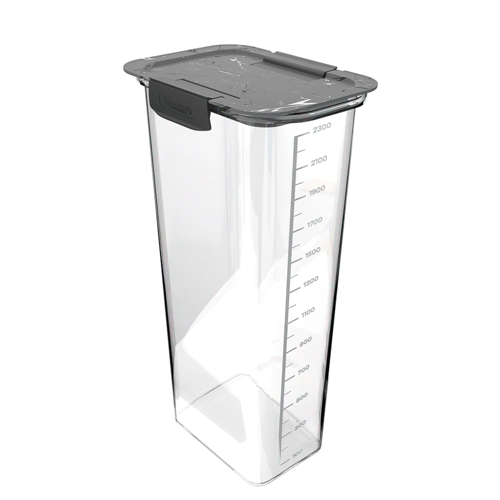 Вместительный герметичный контейнер объемом 2300 мл создан для удобного хранения сыпучих продуктов. Надежные защелкивающиеся замки по периметру крышки обеспечивают полную защиту от влаги, посторонних запахов и вредителей. Изготовлен из прочного пищевого пластика, сохраняющего свежесть круп, муки, сахара, чая или корма для животных. Прозрачные стенки позволяют легко идентифицировать содержимое и контролировать его количество. Компактная прямоугольная форма удобна для компактного размещения на полках или в шкафу. Универсальное решение для поддержания порядка на кухне, в кладовой или на даче.