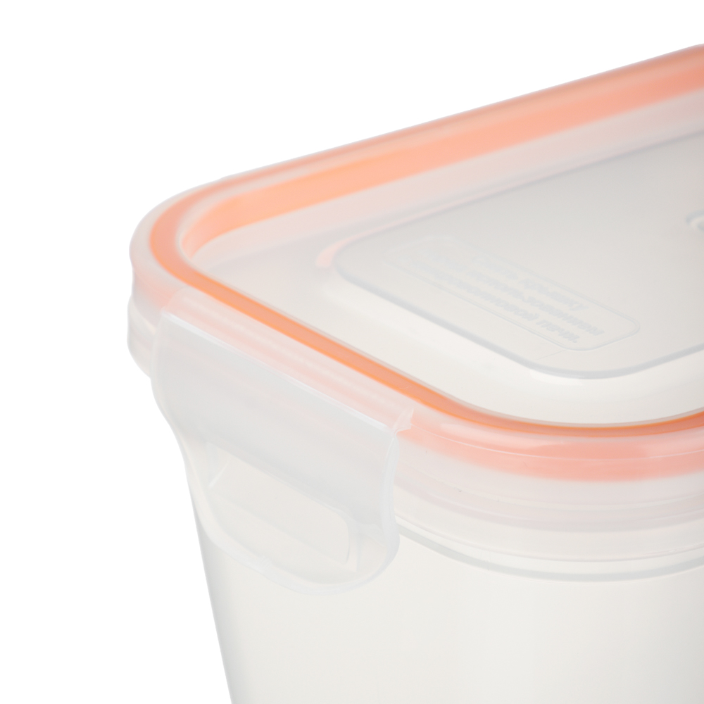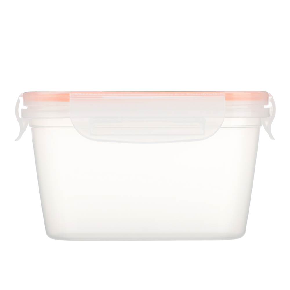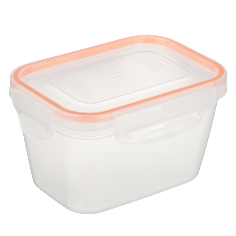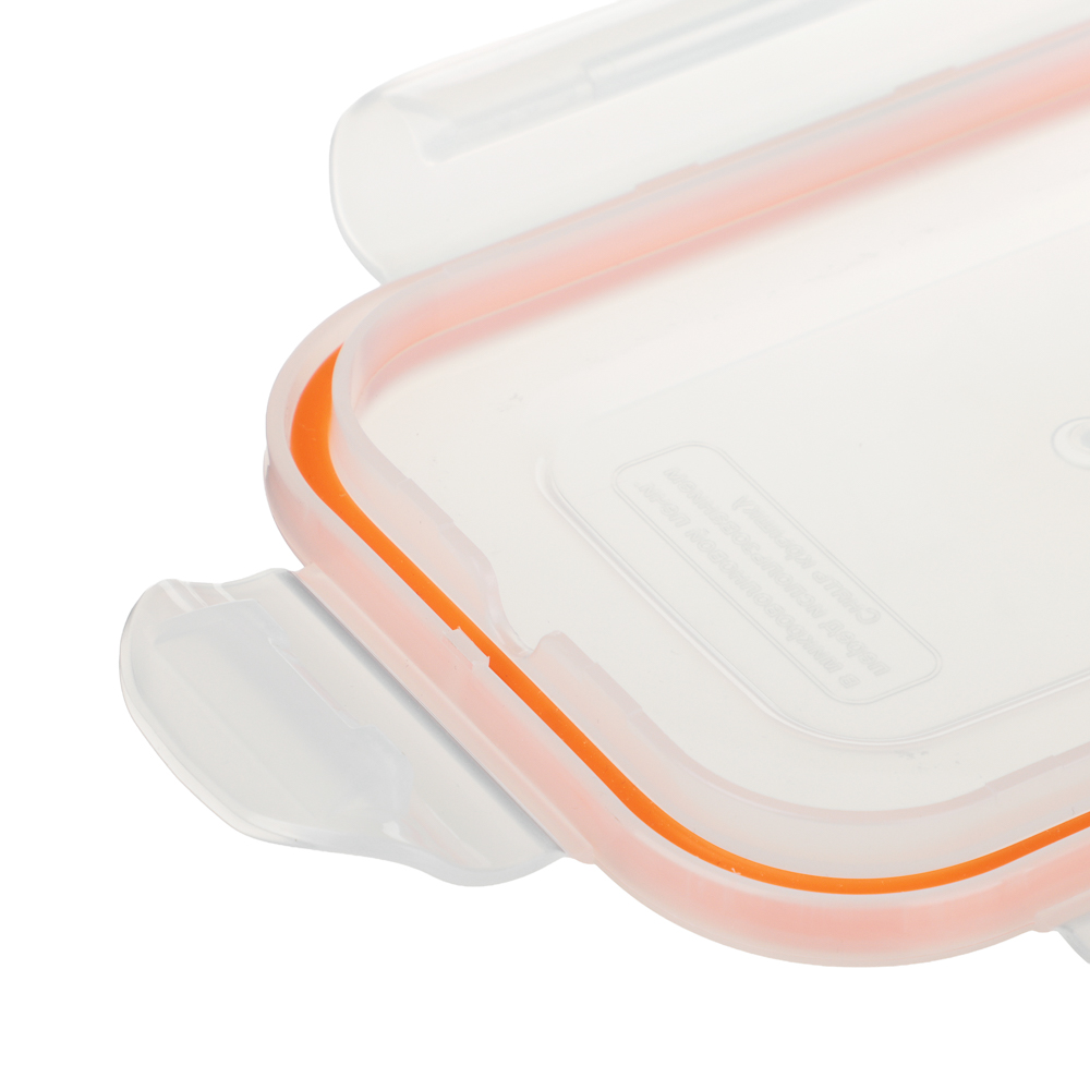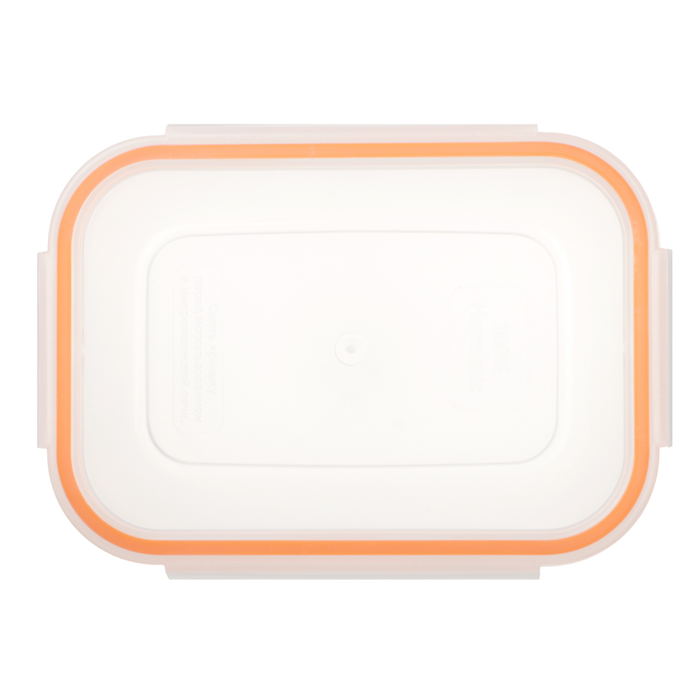 Контейнер пищевой герметичный 0,77 л сделан для тех, кто ценит порядок, свежесть и удобство. Идеален для хранения остатков еды, приготовления порционных блюд или переноски ланча в офис. Крышка плотно фиксируется двумя надёжными защелками по бокам. Материал – пищевой пластик, прозрачный, без запаха, безопасный для еды. Цветовая акцент, яркая оранжевая окантовка крышки, добавляет настроения.