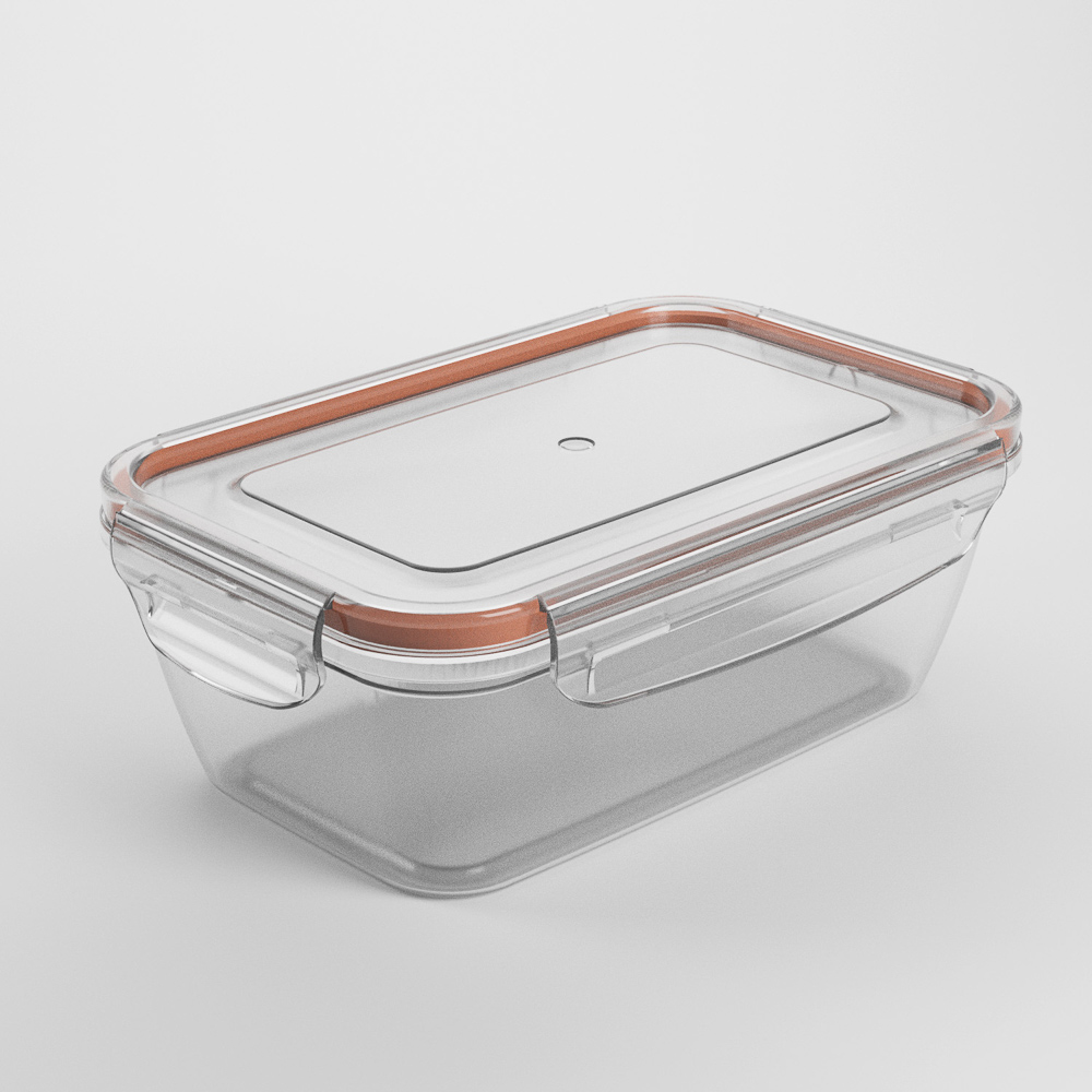 Контейнер пищевой герметичный с защелками 1,4л, прямоугольный конусный, пластик