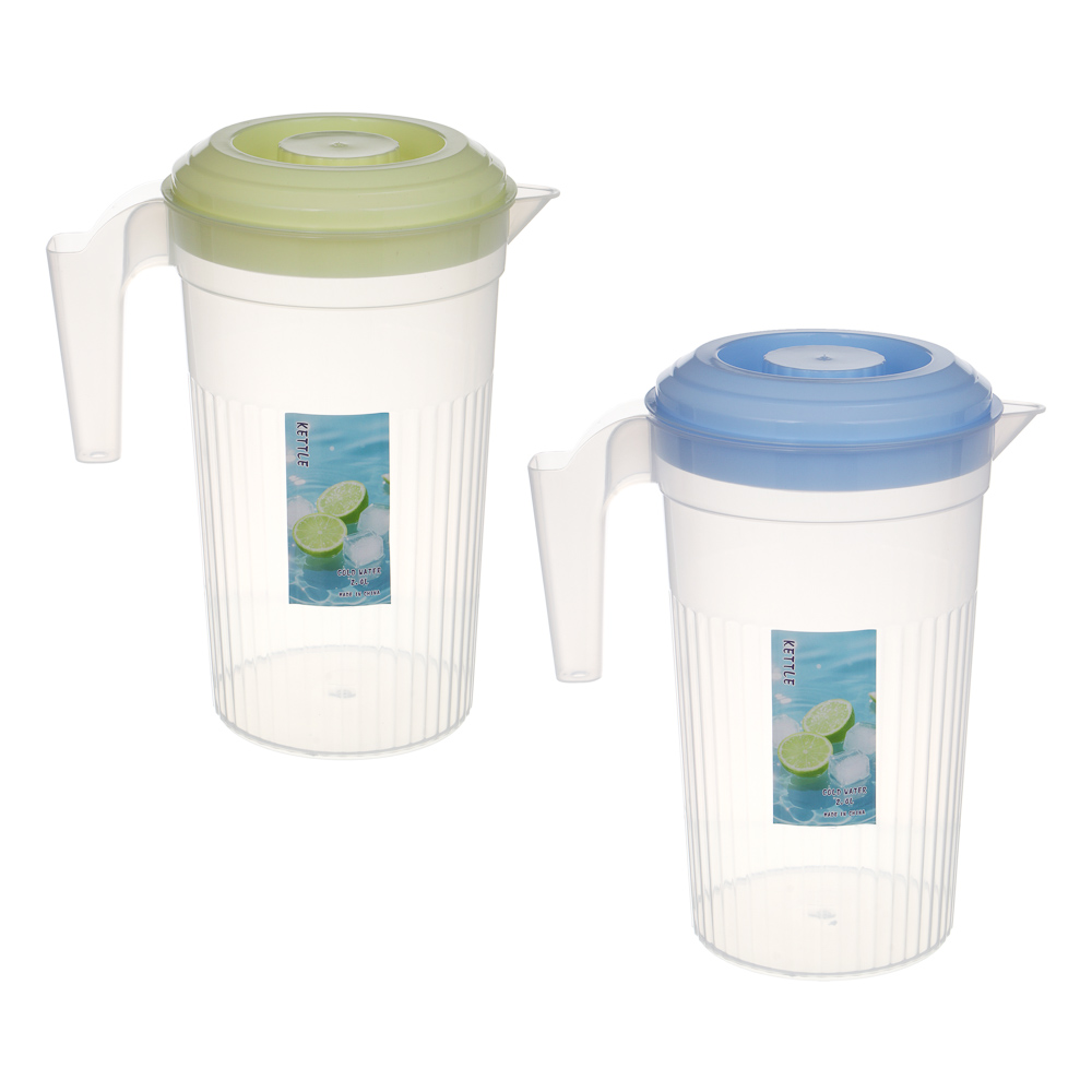 Кувшин для воды «Лайм» из пластика, объем 2400 мл, 20,5x24 см – это вместительная емкость для воды и холодных напитков с крышкой. Объем 2,4 л подходит для большой семьи. Изделие имеет сдержанный дизайн с ненавязчивым принтом и широкое устойчивое основание. Кувшин подходит для лимонадов, морсов и холодного чая. Удобная ручка обеспечивает комфортный захват даже при максимальном наполнении, а правильная форма носика исключает подтекание и попадание напитка мимо чашки. Легко моется, не боится падений. Стильное и практичное решение для любой кухни. 2 цвета в ассортименте.