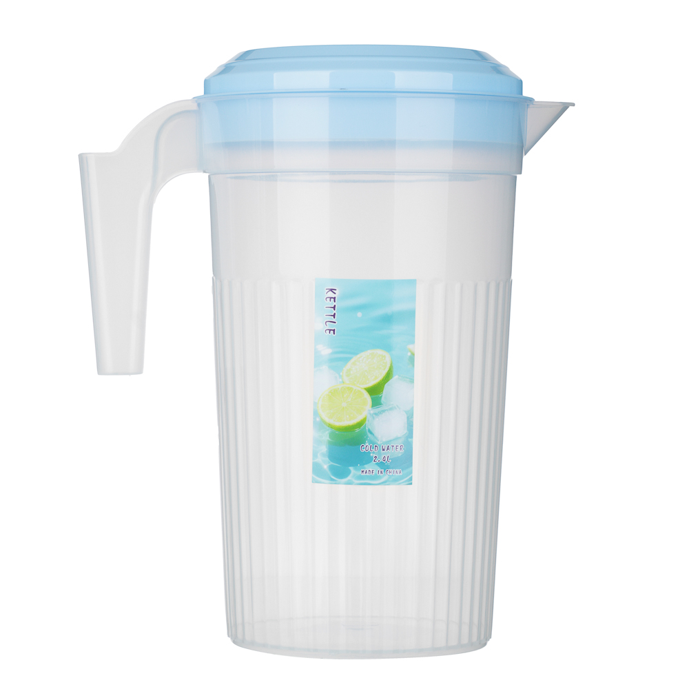 Кувшин для воды «Лайм» из пластика, объем 2400 мл, 20,5x24 см – это вместительная емкость для воды и холодных напитков с крышкой. Объем 2,4 л подходит для большой семьи. Изделие имеет сдержанный дизайн с ненавязчивым принтом и широкое устойчивое основание. Кувшин подходит для лимонадов, морсов и холодного чая. Удобная ручка обеспечивает комфортный захват даже при максимальном наполнении, а правильная форма носика исключает подтекание и попадание напитка мимо чашки. Легко моется, не боится падений. Стильное и практичное решение для любой кухни. 2 цвета в ассортименте.