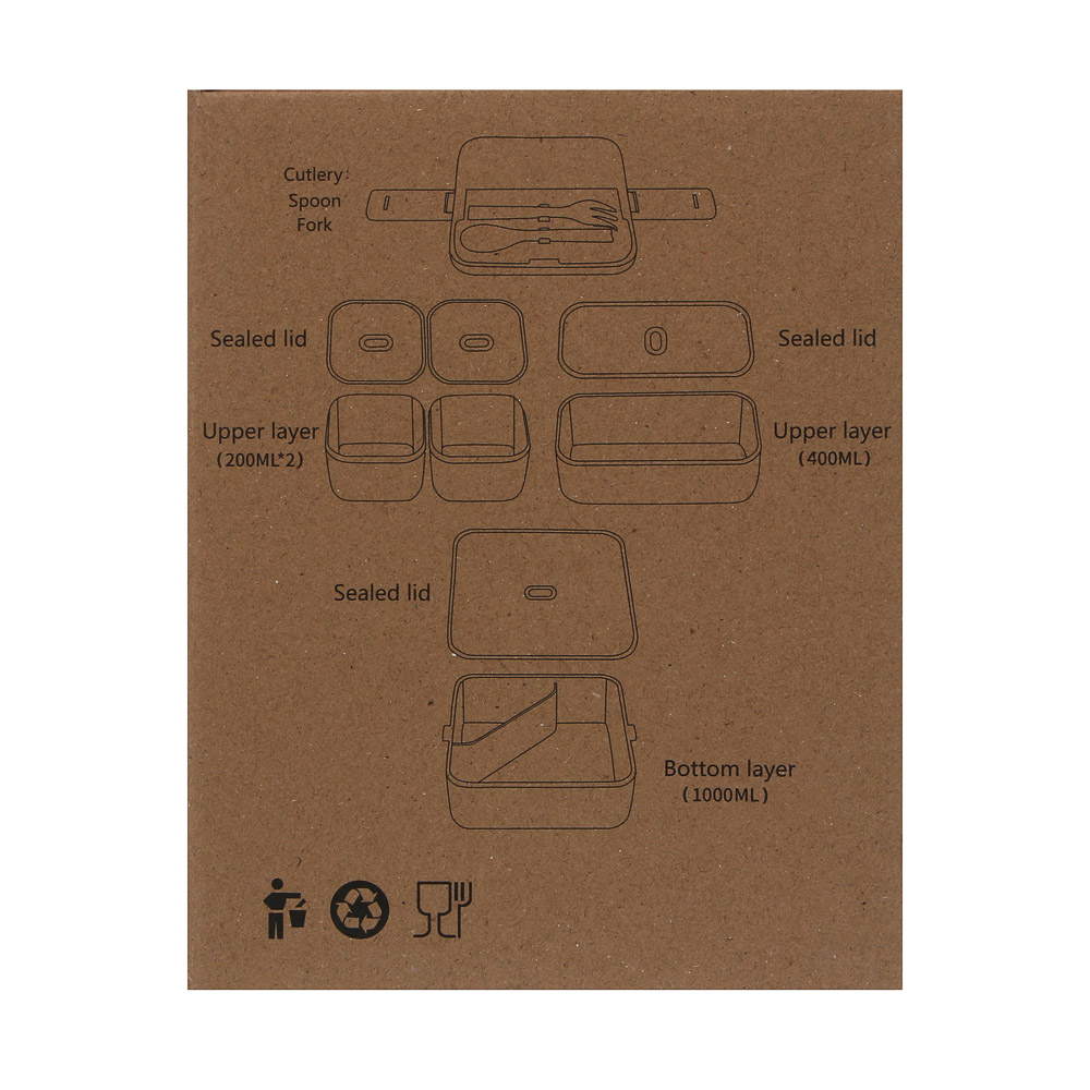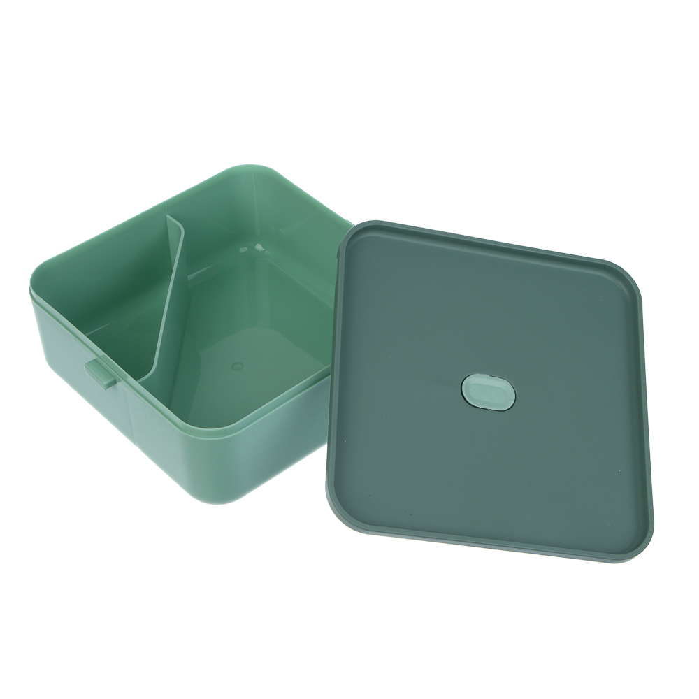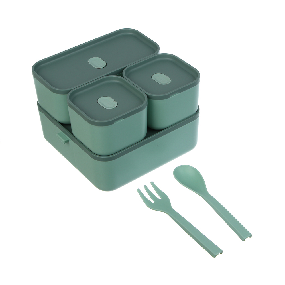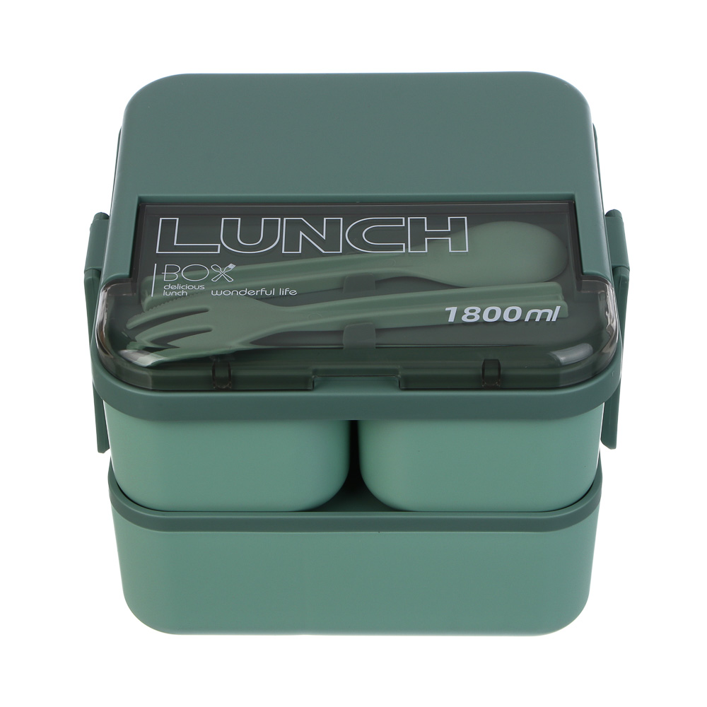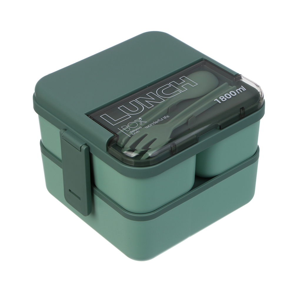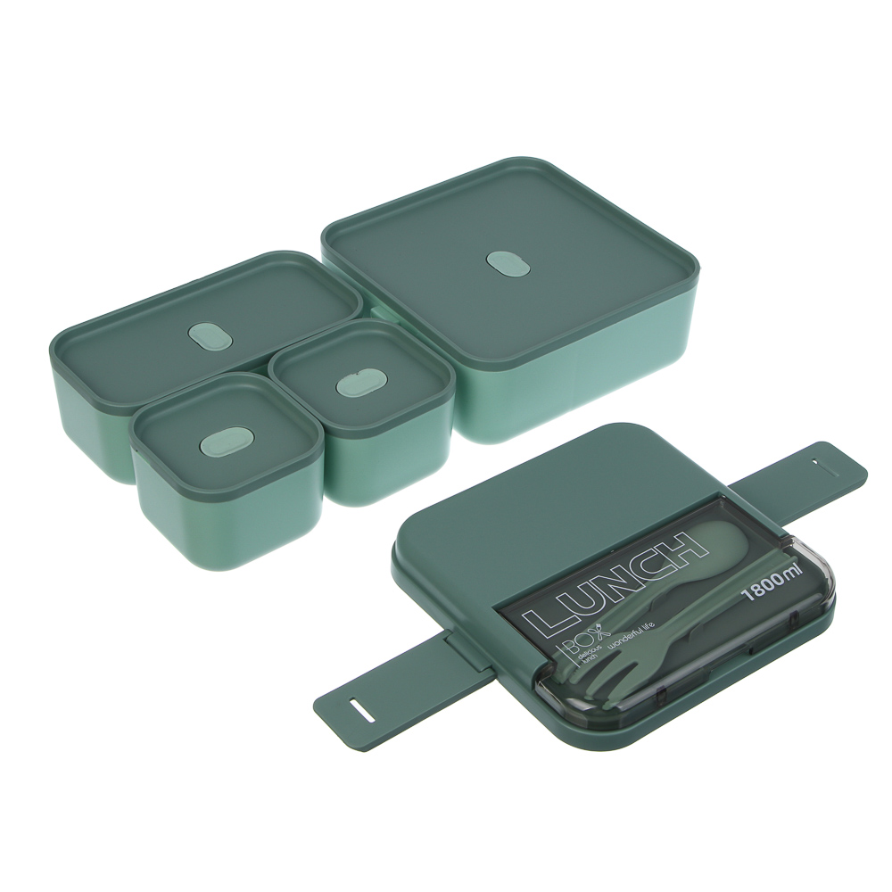 Удобный и стильный ланч-бокс станет вашим надёжным спутником на работу, в школу или на прогулку. Изготовлен из высококачественного полипропилена, безопасного для здоровья (BPA free), устойчивого к механическим повреждениям и перепадам температур. Объём 1,8 л распределён по четырём отдельным емкостям: две маленькие — по 200 мл (идеально для соусов, овощей или фруктов); одна средняя — 400 мл (подходит для салата, каши или второго блюда); одна большая — 1 л (для основного блюда, супа). Каждая ёмкость имеет плотную герметичную крышку, которая предотвращает протекание, сохраняет свежесть продуктов и удобна при транспортировке. Двухуровневая конструкция позволяет компактно размещать все порции в одном контейнере. Комплект включает вилку и ложку в специальном отделении на крышке — всё готово к употреблению. Можно разогревать в микроволновой печи без крышки, а также использовать в холодильнике и посудомоечной машине. Подходит для хранения как горячих, так и холодных блюд.