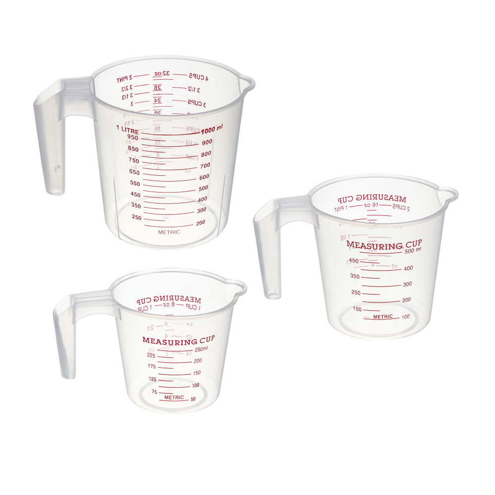Набор мерных стаканов 250/500/1000 мл – это универсальный кухонный набор, который позволяет точно отмерять нужное количество ингредиентов для приготовления самых разных блюд: выпечки, коктейлей, кондитерского крема и детского питания. Содержат шкалу деления в миллилитрах, чашках и унциях. Четкие обозначения позволяют комфортно дозировать продукты, не напрягая зрение. Удобная форма с ручкой и правильной формой носика обеспечивает комфорт во время использования и позволяет легко и быстро пересыпать или переливать содержимое из мерного стакана в другую емкость. Легко моются, не впитывают запахи и компактно хранятся, складываясь один в другой.
