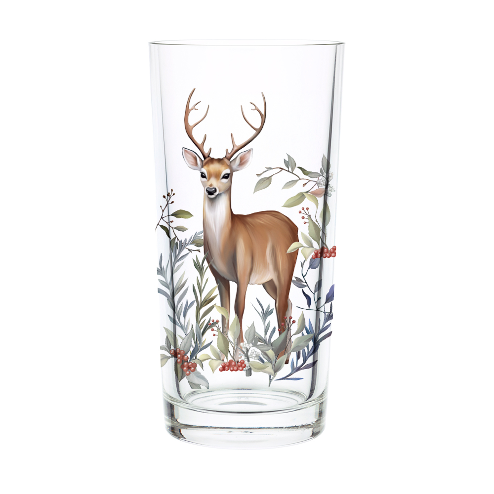 Стакан высокий ОСЗ Олень объёмом 290 мл – это стильный и практичный предмет посуды, выполненный из прозрачного стекла. Идеально подходит для воды, сока, коктейлей или прохладительных напитков. Благодаря своей высоте и узкой форме, стакан отлично сохраняет холод и красиво выглядит на столе. Центральным элементом дизайна является изображение благородного оленя с ветвистыми рогами, стоящего среди зимнего леса. Создает атмосферу уюта и природной гармонии. Прозрачное стекло позволяет рисунку выглядеть особенно живо и выразительно. Прочное стекло устойчиво к перепадам температур, легко моется.