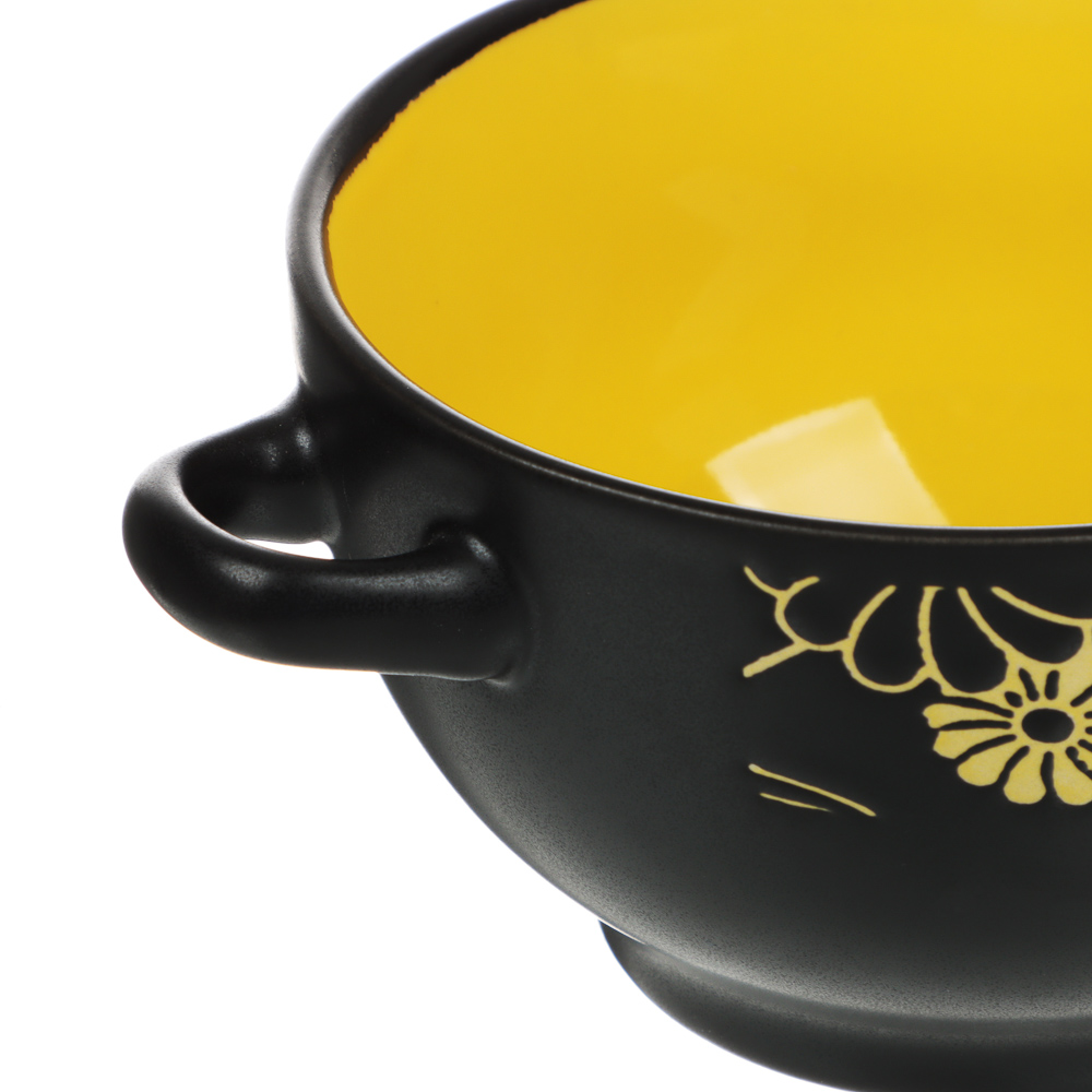 Вы можете приготовить самые вкусные овощные и мясные супы, но гостям приятнее их есть из красивой посуды. Хороший выбор — бульонница объемом 550 мл. Стильный предмет сервировки предназначен для подачи первых блюд. Для удобства предусмотрены ручки по бокам емкости. Материал изделия — высокопрочная натуральная керамика.Преимущества:• эксклюзивная коллекция посуды для настоящих эстетов• хорошо держит тепло, от чего бульоны медленно остывают• сохраняет природный вкус пищи, аромат продуктов и пряностей• может использоваться в микроволновой печи для подогрева• подходят для хранения еды в холодильнике• легко очищается мягкими и абразивными губками.