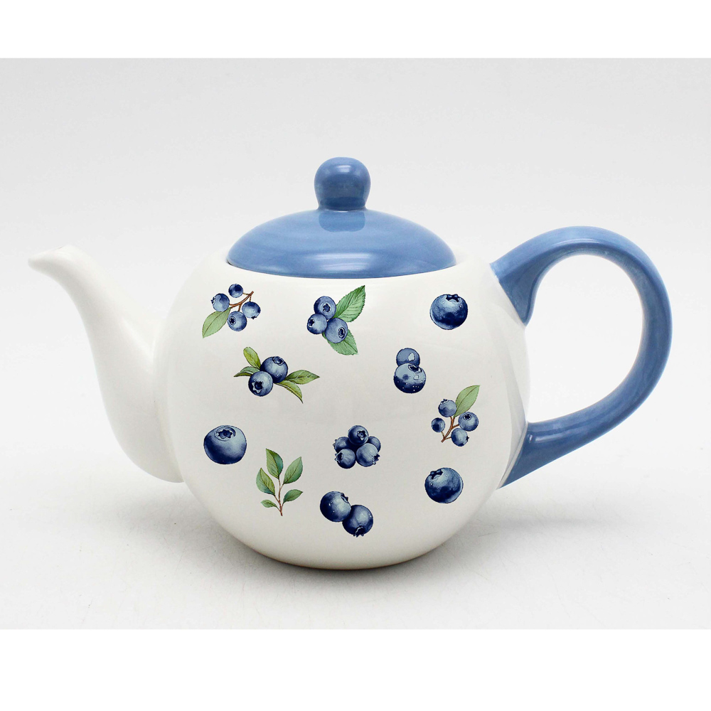 Чайник «Голубика» от тм MILLIMI объёмом 900 мл – это керамическая посуда для заваривания чая. Белый корпус декорирован принтом с ягодами голубики, а крышка и ручка выполнены в голубом цвете. Большая ручка комфортно ложится в руку и не нагревается, а правильная форма носика исключает попадание капель мимо чашки. Чайник подходит для ежедневного использования и станет украшением кухни. Керамика долго сохраняет температуру заваренного чая, не впитывает запахи и легко очищается от чайного налета.
