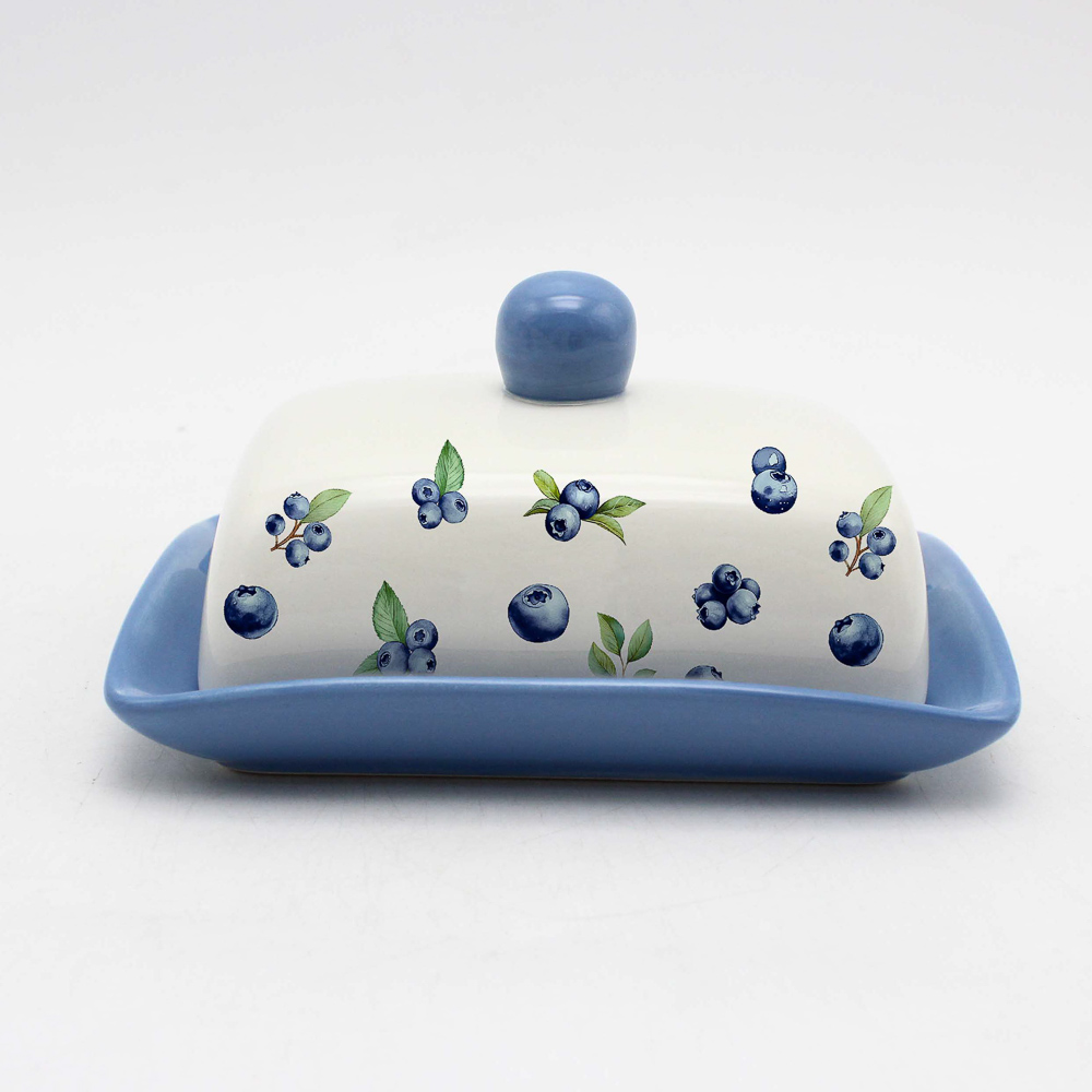 Масленка «Голубика» от тм MILLIMI размером 17х13х8 см – это керамическая посуда для хранения сливочного масла в холодильнике и подачи на стол. Голубое основание и белая крышка с принтом в виде ягод голубики создают свежий акцент в сервировке. Крышка плотно прилегает, защищая масло от посторонних запахов и от размягчения при комнатной температуре. Небольшой бортик не дает растаявшему маслу растекаться по тарелке и не мешает извлекать масло из масленки при помощи ножа или ложки. Изделие легко моется, устойчиво к образованию царапин и трещин при аккуратном использовании.