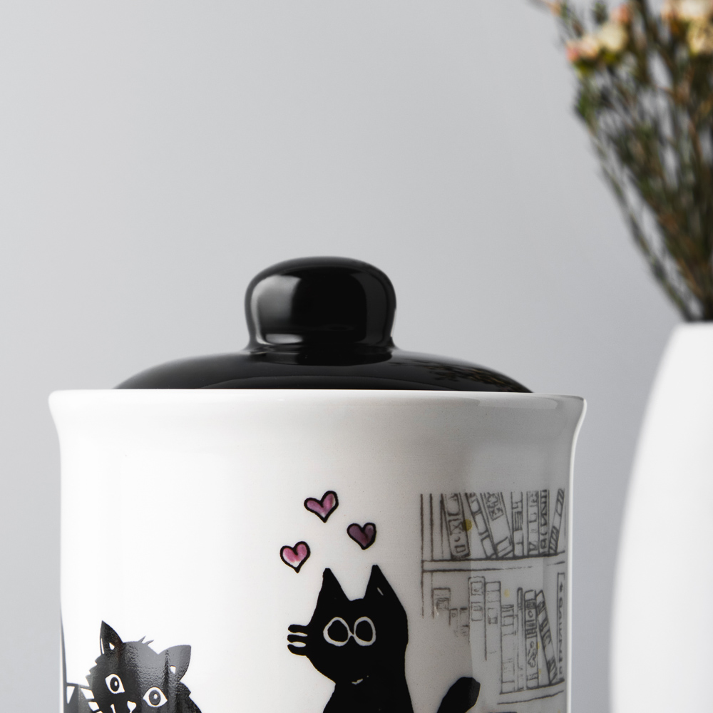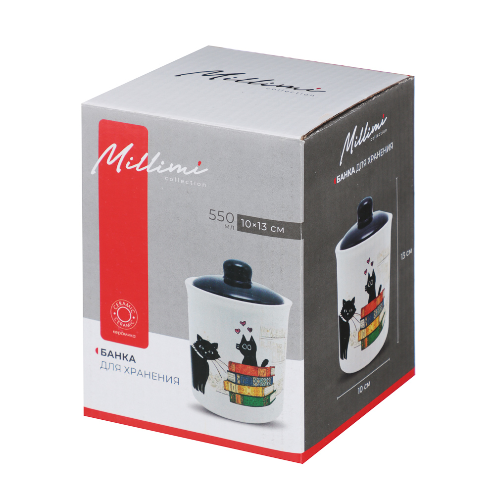 Банка для хранения MILLIMI Котейка размером 10х13 см и объемом 550 мл с крышкой поможет организовать пространство на кухне, а также станет очаровательным дополнением интерьера. Идеально подходит для хранения сыпучих продуктов: чая, орехов, круп, сухофруктов, специй, сахара и соли. Крышка закрывается плотно, препятствуя попаданию воздуха внутрь. Качественная керамика обладает повышенной прочностью, устойчива к образованию трещин, царапин и сколов при аккуратном использовании.Яркий и оригинальный дизайн с изображением забавных хвостатых друзей привносит в интерьер нотку игривости и тепла.