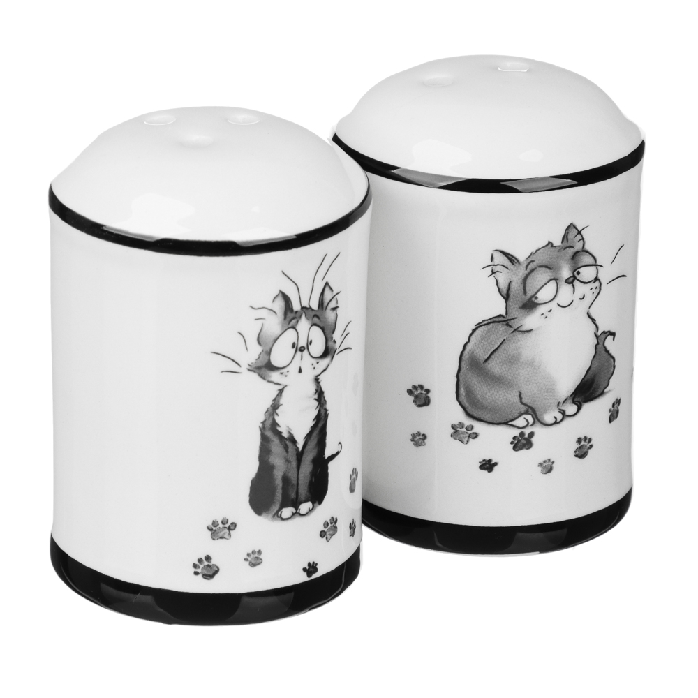 Набор для соли и перца «Озорные коты» от MILLIMI - отличный выбор для Вашей кухни! Эти мелочи на кухне очень важны. Специи подчеркивают неповторимость блюда, позволяя отдельным ингредиентам раскрыть свой аромат и богатый вкус. Важно, чтобы специи всегда находились под рукой.Солонка и перечница изготовлены из качественной керамики и украшены изображением кота и кошки. Веселые и забавные коты не оставят равнодушными никого, легко поднимут настроение и вызовут улыбку. Отличный подарок для любимых и близких!