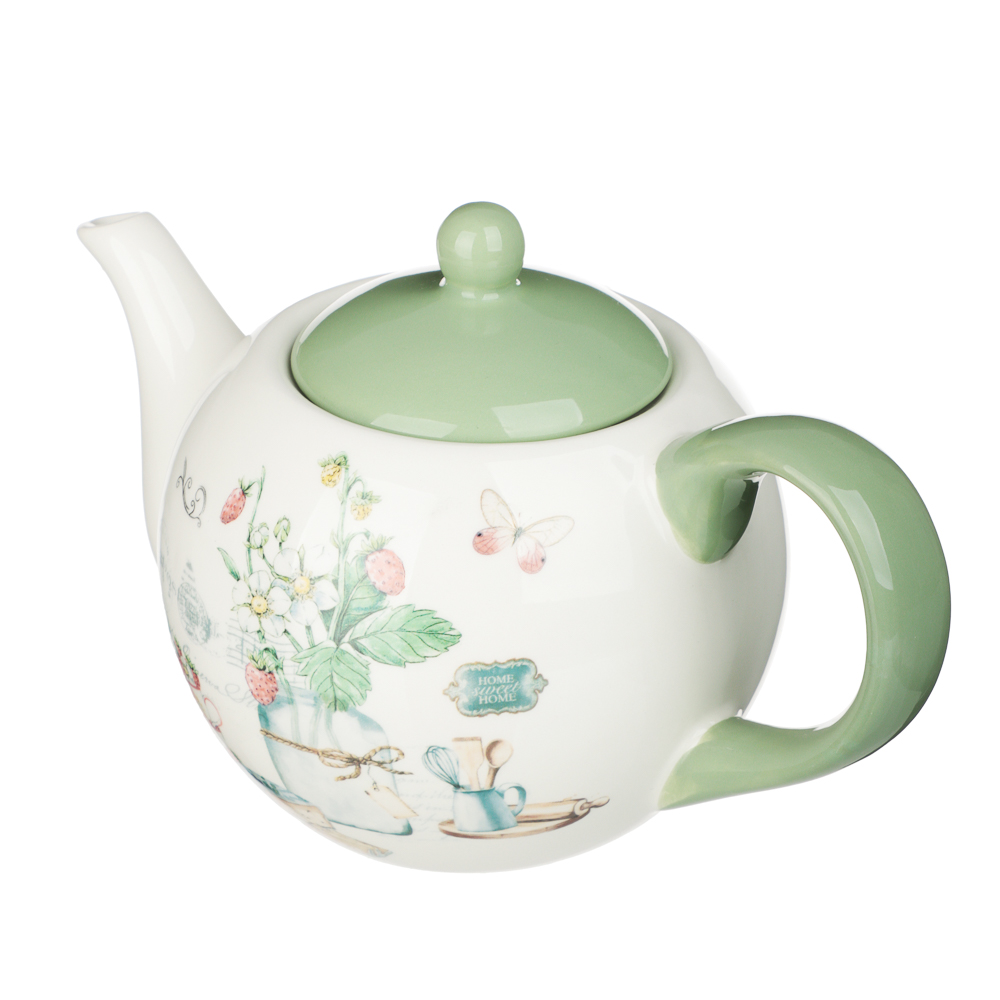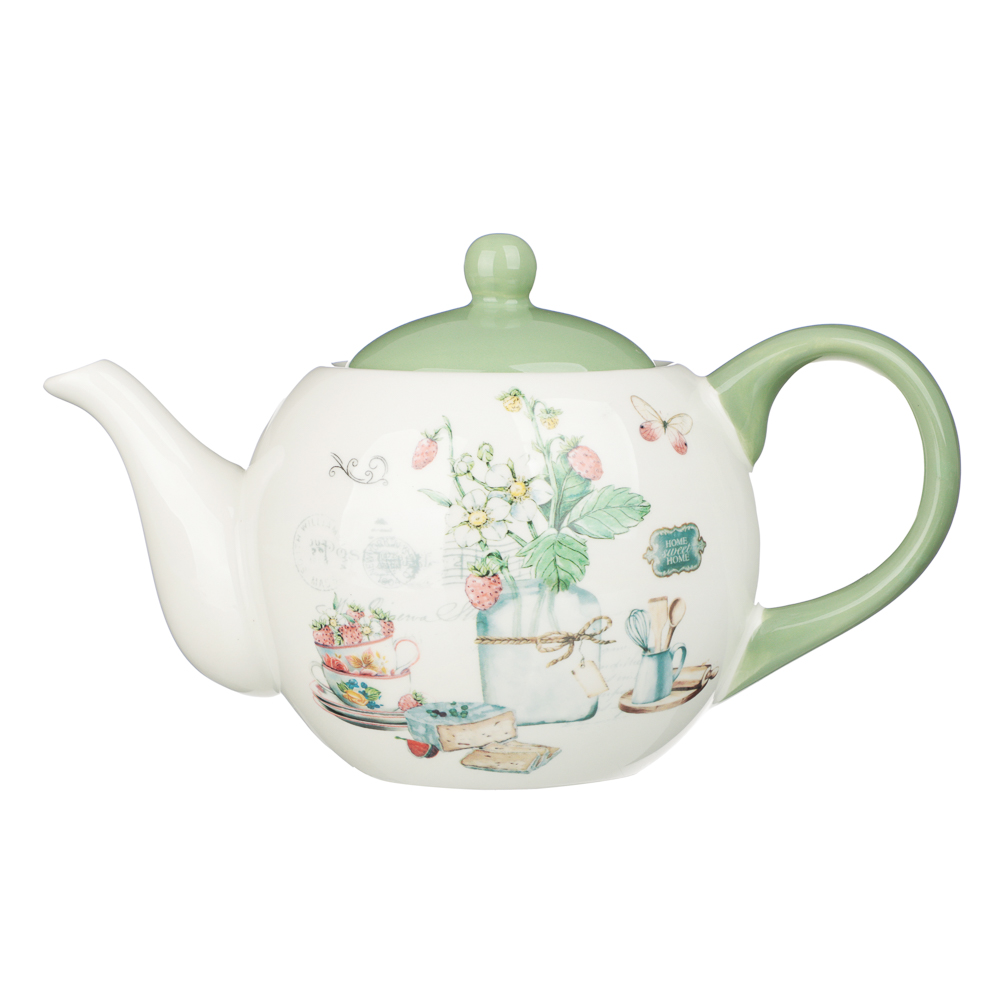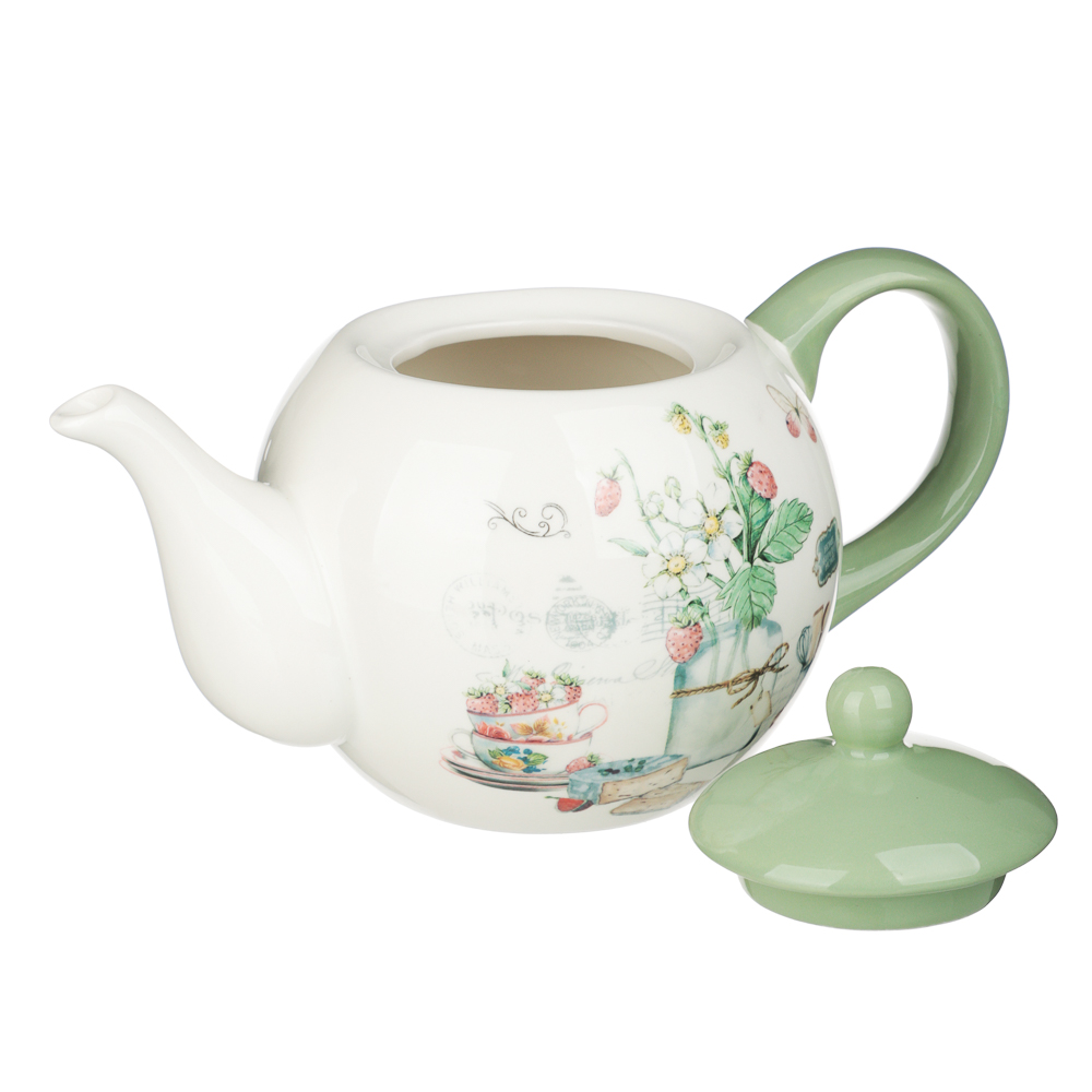 Чайник MILLIMI «Земляника», объем 900 мл, поможет организовать уютное чаепитие за неспешными беседами и соберет за столом близких и друзей. Чайник изготовлен из качественной керамики, имеет толстые стенки и плотную крышку, надежно удерживает тепло, поэтому настой получается насыщенным и ароматным. Нежный дизайн с сочными земляничными мотивами подарит летнее настроение даже в хмурый день. Удобная ручка обеспечивает комфортный хват, а правильная форма носика исключает попадание капель мимо чашки. Легко очищается от чайного налета, устойчив к образованию царапин и сколов при аккуратном использовании. Высота с крышкой - 14 см, ширина с ручкой - 22,7 см.