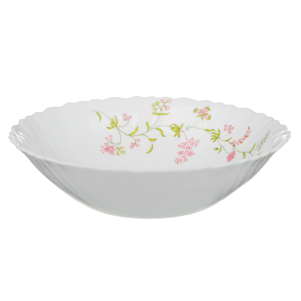 Салатник из опалового стекла 19 см MILLIMI «Клавель» – это качественная посуда для повседневного использования, а также для праздничного стола с нежным ненавязчивым принтом. Имеет повышенную прочность и устойчивость к механическим воздействиям, не царапается от столовых приборов. Легко отмывается, не окрашиваясь от продуктов. Благодаря универсальному дизайну будет сочетаться с любой посудой и скатертью. Подходит для подачи салатов, закусок, а также фруктов.