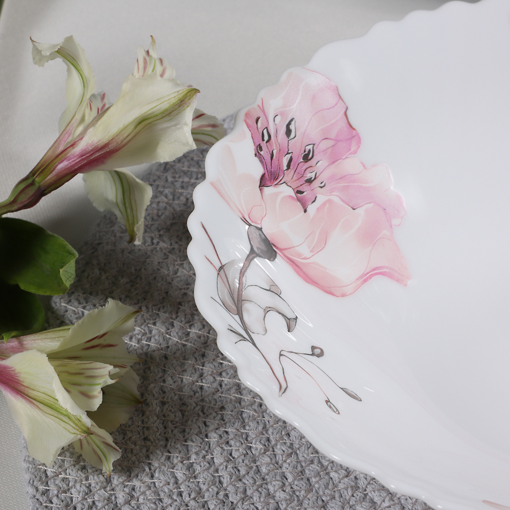 Салатник MILLIMI Роселла – это воплощение изящества и утонченности, созданное для тех, кто ценит красоту в деталях. Выполненный из опалового стекла, этот салатник диаметром 19 см привлекает внимание нежным цветочным рисунком, который придает столу особую атмосферу уюта и гармонии. Волнистый край добавляет изделию элегантности, подчеркивая его уникальный дизайн. Салатник идеально подходит для подачи салатов и закусок, становясь ярким акцентом на любом праздничном или повседневном столе. Превратите каждый прием пищи в эстетическое наслаждение с посудой MILLIMI Роселла.