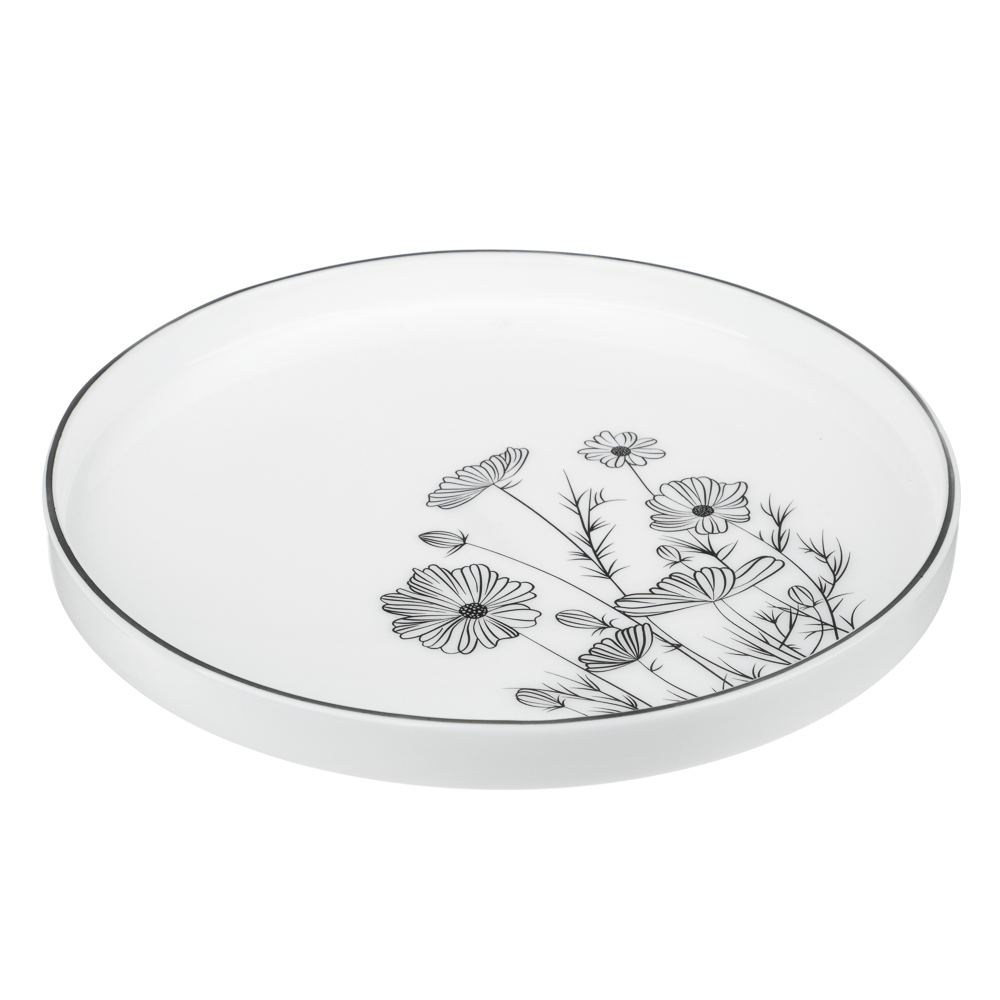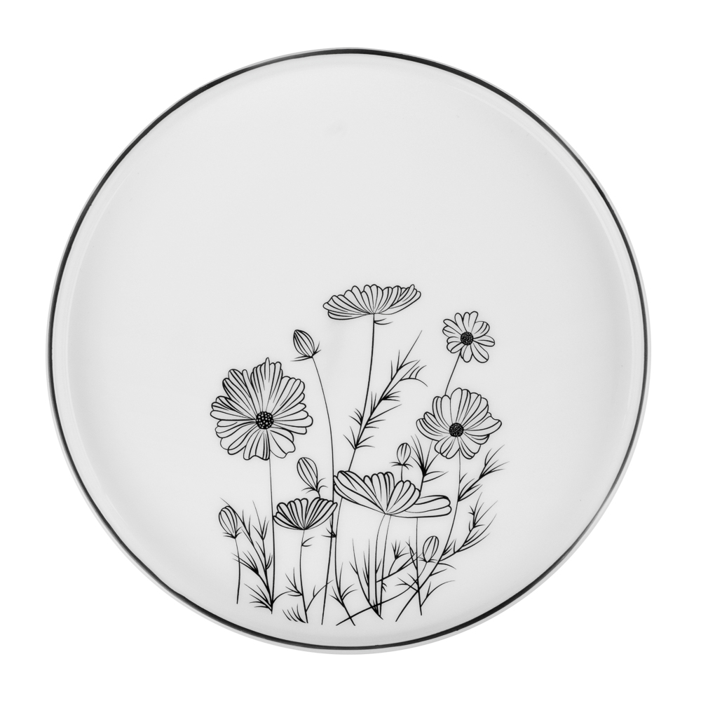Тарелка десертная MILLIMI «Адриа» 20x2,1 см из опалового стекла подходит для фуршетов, банкетов и семейных обедов. Стильная тарелка белого цвета с контрастной черной отводкой и с монохромным лаконичным цветочным орнаментом добавляет выразительности и художественной эстетики в сервировку стола. Размер оптимален для порционной подачи торта, пирожных, печенья, фруктовых нарезок и других десертов. Опаловое стекло отличается высокой степенью гигиеничности и практичностью: не впитывает запахи, легко моется и устойчиво к механическим повреждениям при аккуратном использовании.