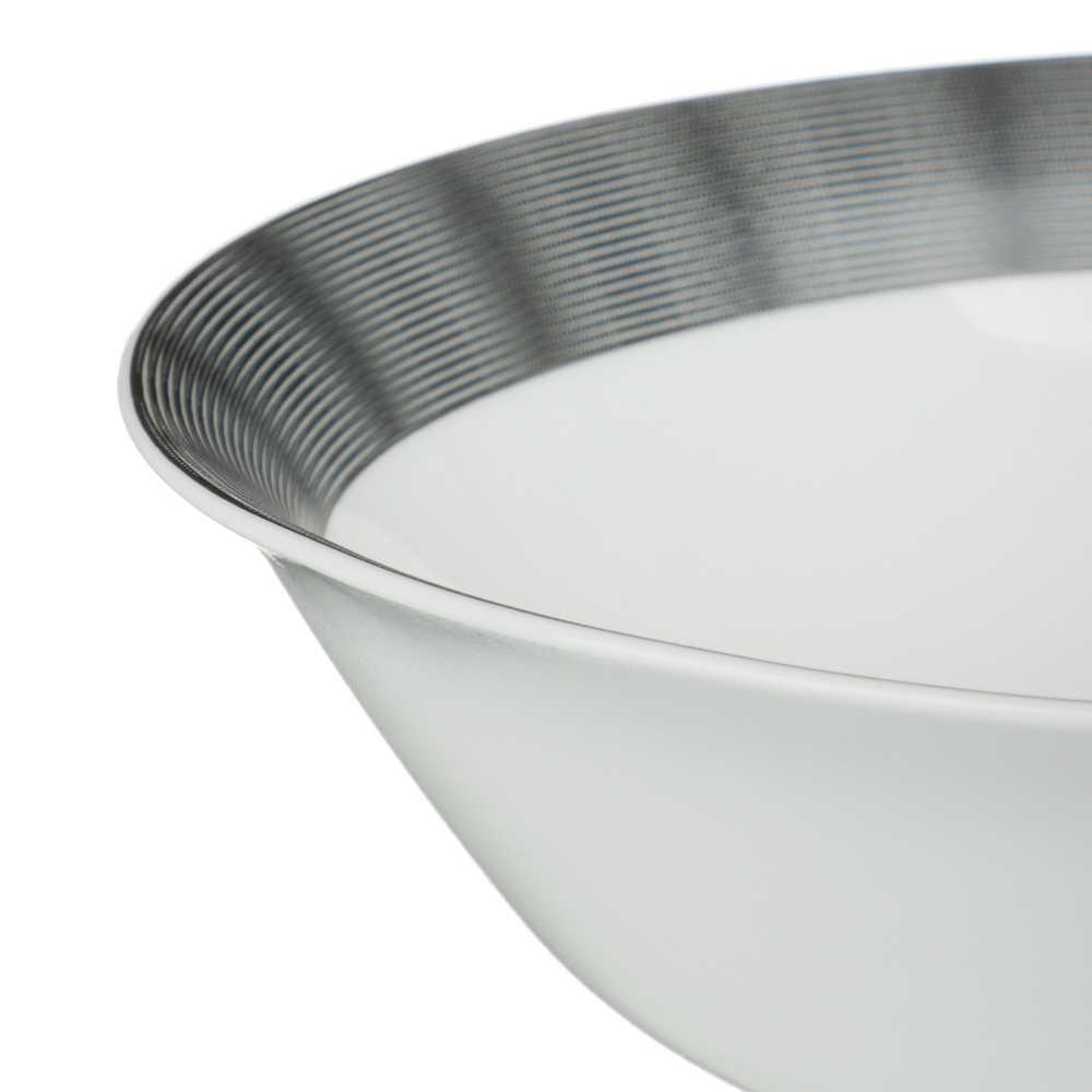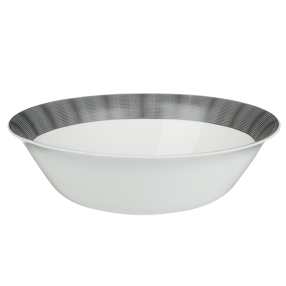 Салатник MILLIMI Графит объёмом 760 мл — это стиль и практичность в одном изделии. Изготовлен из прочного опалового стекла, устойчивого к царапинам и повседневному износу. Подходит для подачи салатов, гарниров, фруктов, закусок или холодных блюд даже на большую компанию. Белоснежная внутренняя поверхность идеально подчёркивает цвет и текстуру блюд, а изящный графитовый ободок с текстурным рисунком придаёт тарелке современный, выразительный вид. Дизайн в духе минимализма легко вписывается в любой интерьер. Размер 19х5,4 см.