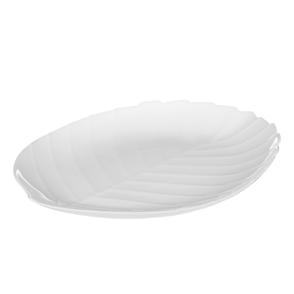Блюдо MILLIMI Листья размером 29 см – изящная посуда для повседневной и праздничной сервировки. Выполнено из опалового стекла с рельефной поверхностью, имитирующей нежные прожилки листа. Изделие подходит для подачи десертов, фруктов, нарезок и закусок. Поверхность не подвержена царапинам от столовых приборов, поэтому посуда сохраняет первоначальный вид даже при частом использовании.
