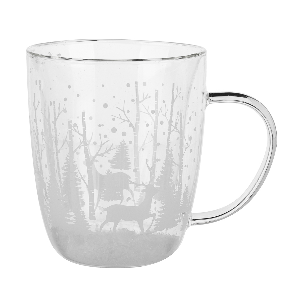 Кружка стеклянная с двойными стенками MILLIMI "Новогодняя", объем 330 мл создаст новогоднее настроение и наполнит чаепитие уютом, теплом и атмосферой зимней сказки. Лаконичный монохромный принт с оленями и заснеженным лесом смотрится деликатно и изящно. Кружка дополнит интерьер кухни в новогоднем стиле и гармонично впишется в повседневную сервировку. Двойные стенки не нагреваются и обеспечивают сохранение тепла напитка. Отличный подарок для создания праздничного настроения.