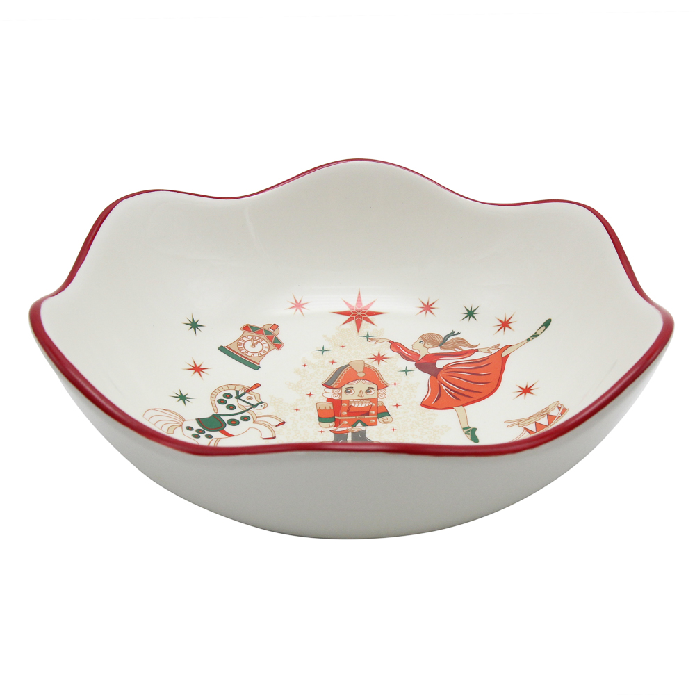 Приготовьтесь удивлять гостей не только вкусом, но и изысканной подачей ваших фирменных блюд! Глубокий и вместительный салатник, выполненный из высококачественной белой керамики, станет главным украшением любого застолья. Уникальный дизайн с узором по мотивам любимой зимней сказки «Щелкунчик» мгновенно создаст в доме волшебную атмосферу самого ожидаемого праздника. Размер: 21,5х7,5 см. Идеально подходит для подачи салатов, закусок, фруктов или десертов. Станет идеальным презентом на Новый год для близких и коллег.