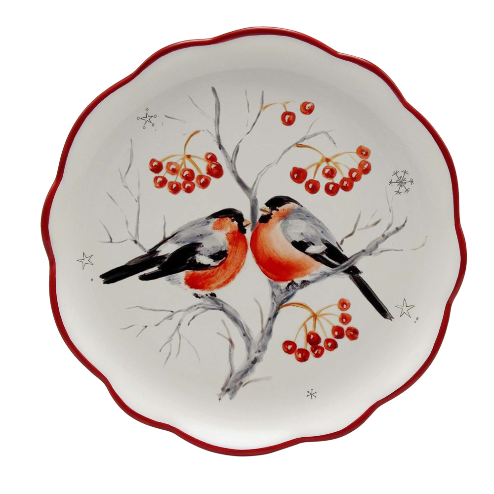 Блюдо круглое MILLIMI «Снегири», 20х20х2,5 см из керамики станет уютным украшением праздничного стола и добавит изюминки в новогоднюю сервировку. Белое блюдо с красной отводкой и принтом с изображением снегирей создаст яркий акцент на столе и позволит организовать эффектную подачу закусок. Может использоваться для подачи канапе, тарталеток, десертов и фруктов. Легко моется, не выцветает, не образует сколов и царапин при аккуратном использовании. Замечательный вариант подарка на Новый год для подруги, коллеги или близкого человека.