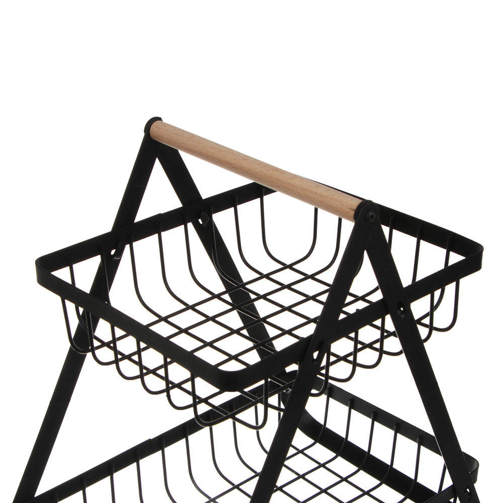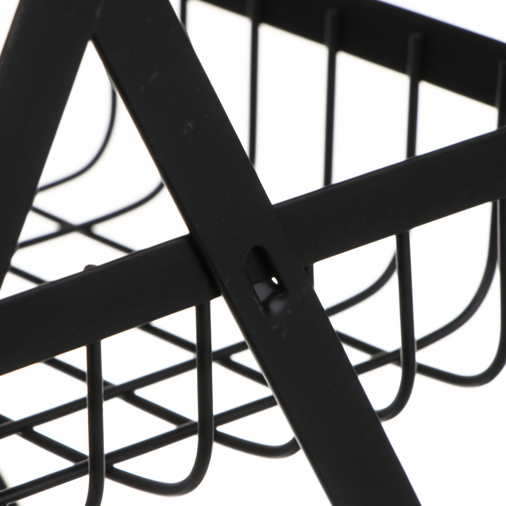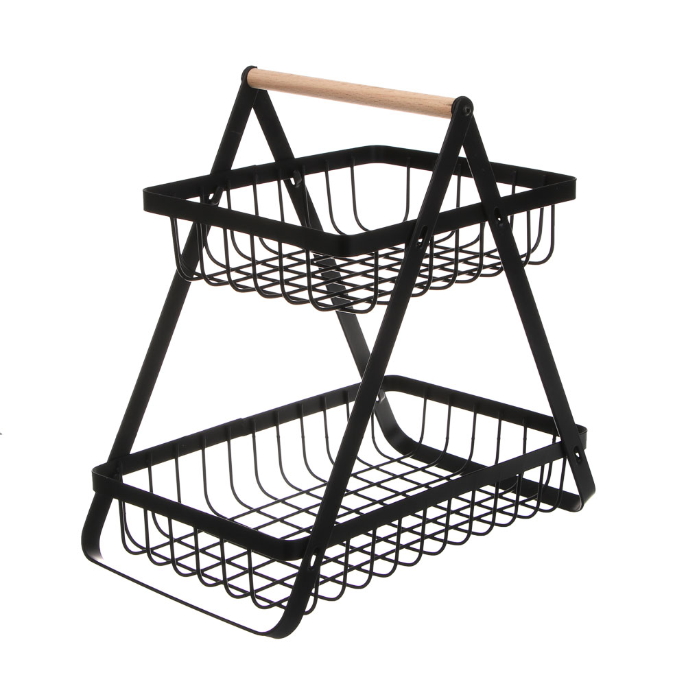 Корзина для фруктов двухярусная Vetta, 22x14x25 см из углеродистой стали, цвет черный – это эстетичный аксессуар для сервировки фруктов. Элегантная конструкция из углеродистой стали не только обеспечивает оптимальные условия для хранения фруктов и овощей, но и становится изысканным элементом декора, органично вписываясь в интерьер современной кухни. Два яруса позволяют компактно разместить различные виды фруктов, экономя место на столешнице. Сетчатая структура обеспечивает циркуляцию воздуха, предотвращая порчу продуктов. Удобная деревянная ручка позволяет легко перемещать корзину с места на место. Складная конструкция не требует много места для хранения.