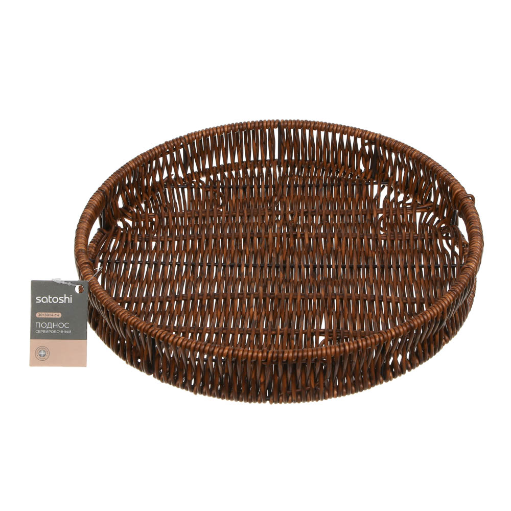 Практичный и стильный поднос Satoshi станет незаменимым помощником на кухне и в гостиной. Изготовленный из прочного ПВХ с каркасом из углеродистой стали, он сочетает лёгкость и надежность. Круглая форма и оптимальный размер 30×30×4 см делают поднос универсальным для подачи закусок, десертов или напитков. Удобные ручки обеспечивают комфорт при переноске, а устойчивость конструкции предотвращает соскальзывание предметов.