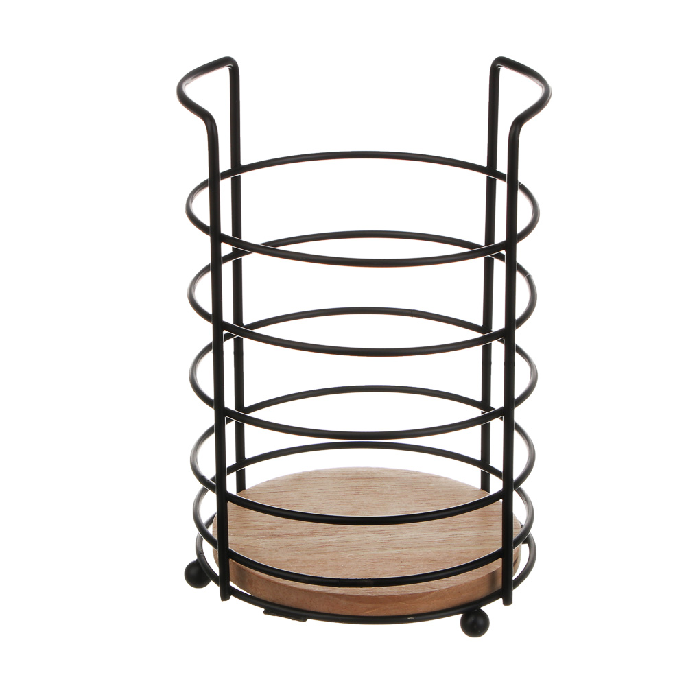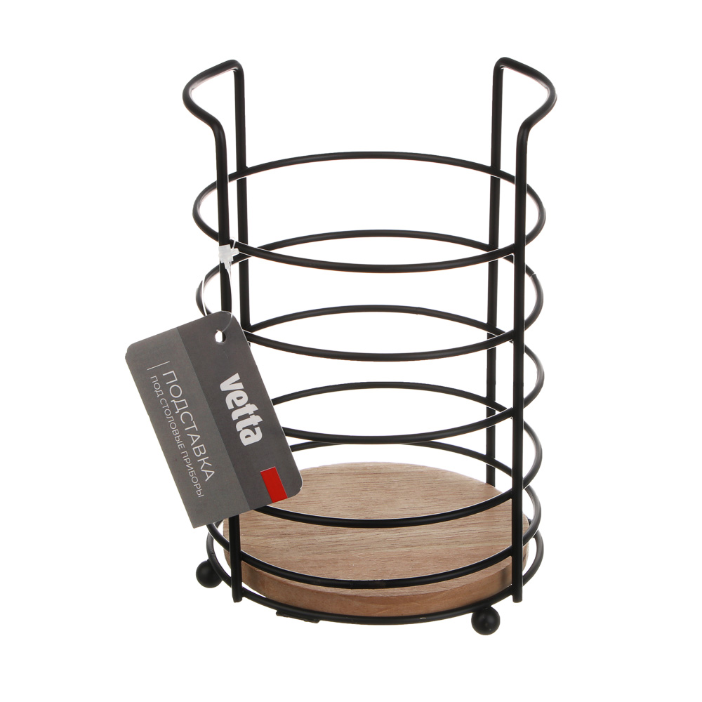 Подставка под столовые приборы Vetta из углеродистой стали, размер 11,2х12,8х16,1 см – это практичное и стильное решение для хранения столовых приборов на домашней кухне. Устойчивая подставка имеет современный лаконичный дизайн с деревянным основанием и металлическим корпусом, красиво смотрится на столешнице, гармонично вписываясь в интерьер кухни. Углеродистая сталь устойчива к деформации, а специальное покрытие защищает изделие от коррозии. Подставка вмещает большой набор приборов: ложки, вилки, столовые ножи, а также подходит для хранения кулинарных лопаток.