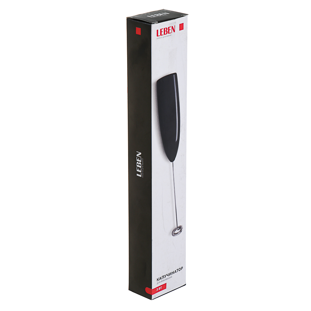 Капучинатор от бренда LEBEN — это компактный, удобный и практичный прибор для взбивания молока, который поможет легко приготовить вкусный капучино, латте или другие кофейные напитки в домашних условиях. Изготовлен из прочного металла и пластика. Работает от двух батареек типа AA, не требует подключения к сети, что делает его мобильным и удобным в использовании на кухне, в поездке или на даче. Прибор оснащён одной насадкой с нержавеющей стальной спиралью, которая эффективно взбивает молоко, создавая густую, воздушную пенку за считанные секунды. Мощность 3 Вт обеспечивает достаточную производительность для быстрого и равномерного взбивания. Простое управление. С LEBEN ваш кофе станет ещё вкуснее — без лишних хлопот и дорогостоящих устройств. Просто, быстро, качественно.