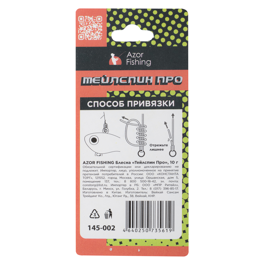 Блесна "Тейлспин Про" 10 г Azor Fishing – это искусственная спиннинговая приманка, главной конструктивной особенностью которой является хвостовое расположение вращающегося лепестка, а также наличие головного отягощающего элемента. Основное преимущество тейл-спиннера дальность заброса и разные варианты проводки. На глубине используют проводку ступенькой, давая приманке на паузах опуститься к самому дну. На мелководных участках используют самые легкие версии приманки, применяя несложные приемы анимации с равномерной проводкой и короткими остановками-паузами. Качественное лакокрасочное покрытие, оригинальные расцветки - хищник не оставит данную блесну без внимания.