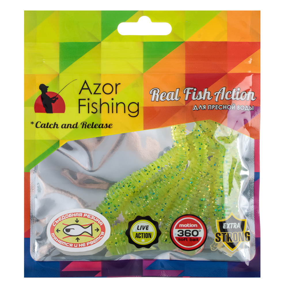 Мягкая силиконовая приманка Azor Fishing демонстрирует живую игру, вращается на 360° и всячески привлекает самую ленивую рыбу. Благодаря хорошей проходимости ей нипочем подводные зоны с корягами. Пресноводные жители любят мягкий полимер больше пластика и металла, а потому с удовольствием его глотают. Как результат — добыча не срывается с крючка.