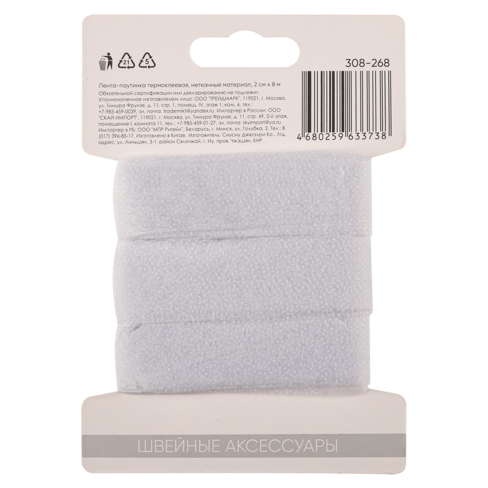 Лента-паутинка термоклеевая из нетканого материала – это универсальный и удобный инструмент для быстрого и надежного скрепления тканей. Доступная в двух размерах: 2 см x 8 м и 3 см x 6 м, эта лента идеально подходит для различных швейных и рукодельных проектов. Благодаря термоклеевому слою, лента активируется при нагреве утюгом, что позволяет быстро и просто склеивать края тканей без необходимости в шитье. Изготовленная из качественного нетканого материала, лента обеспечивает прочное и долговечное соединение, идеально подходящее для подгибки, ремонта одежды, создания аппликаций и других творческих проектов. Лента-паутинка станет незаменимым помощником в любом доме, облегчая и ускоряя процесс работы с тканями.