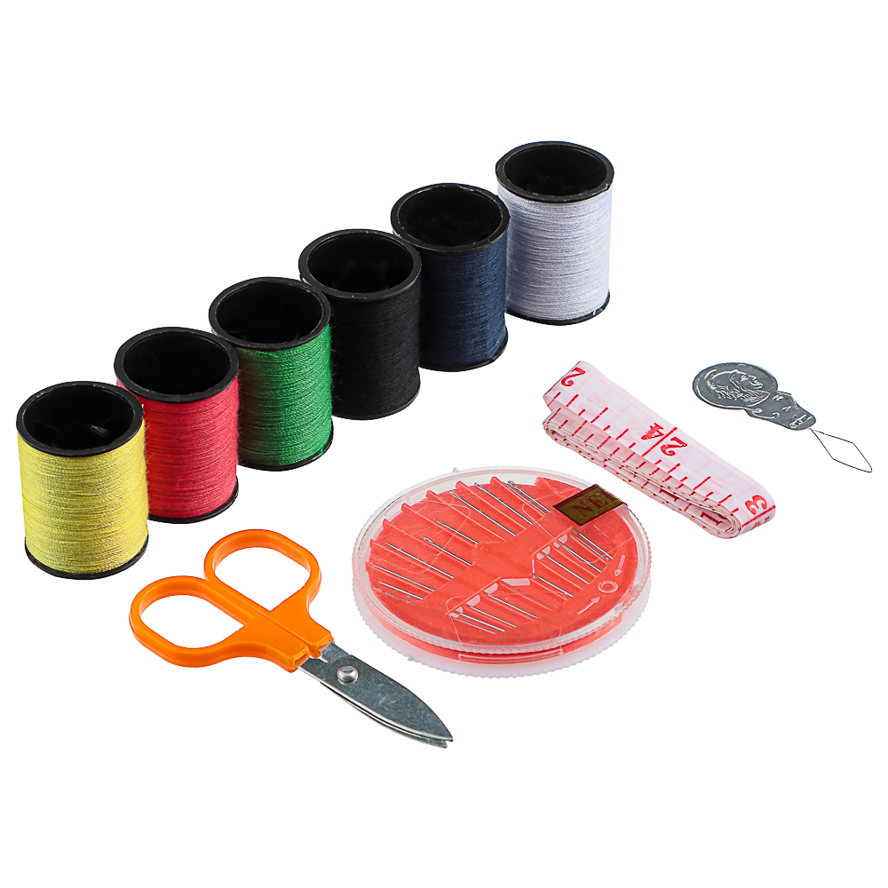 Универсальный набор швейных принадлежностей состоит из 9 предметов и идеально подходит для использования как дома, так и в дороге. В комплект входят 6 катушек ниток разных цветов, ножницы, сантиметр и иглы в игольнице, что позволит вам решать различные швейные задачи в любом месте. Удобная прозрачная косметичка обеспечивает порядок и легкость в транспортировке, позволяя вам всегда иметь под рукой необходимые принадлежности для ремонта одежды, как дома, так и в пути.