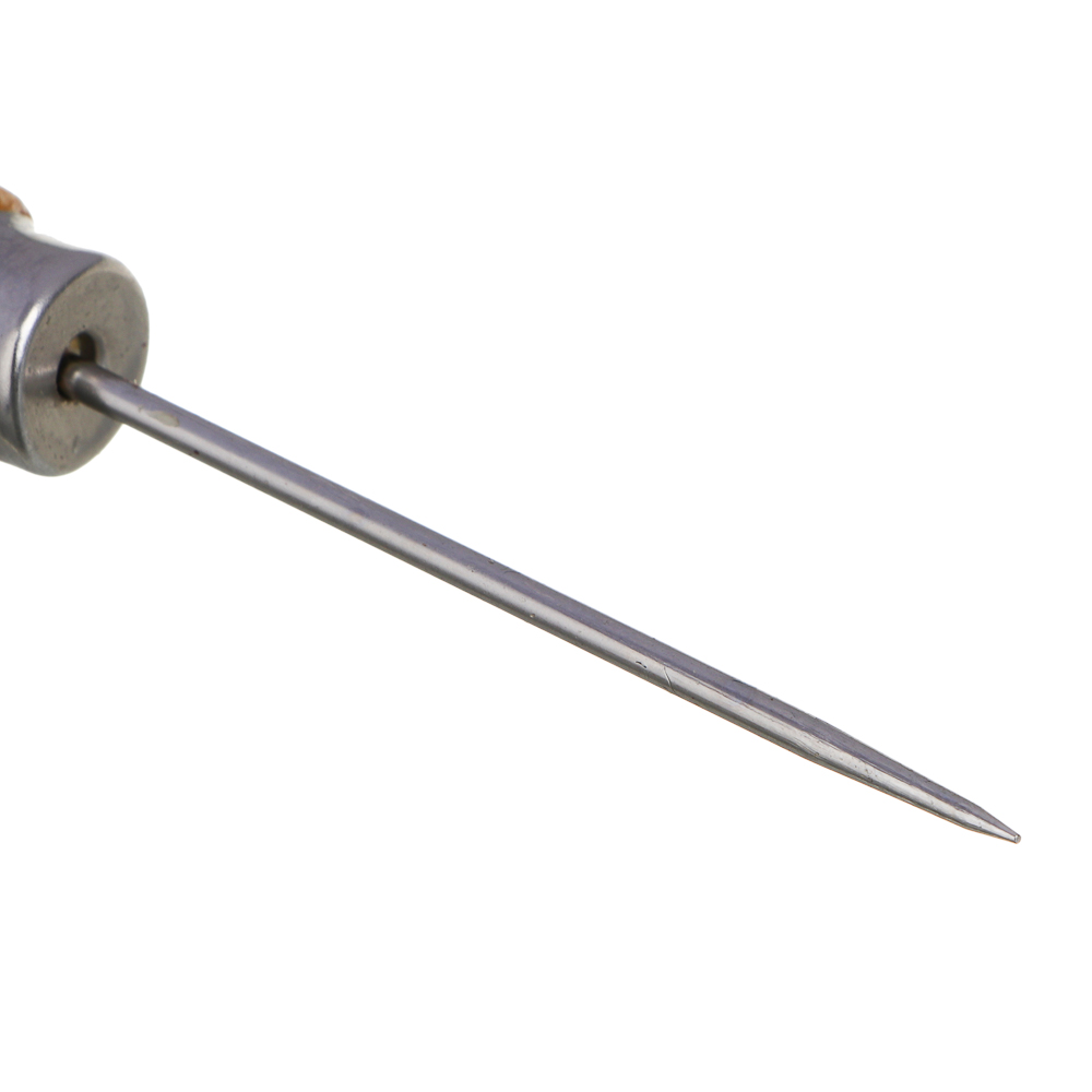 Шило швейное 12,5x2 см используется для прокалывания и прошивки толстых и плотных материалов: кожи, плотных тканей, картона. Удобная деревянная рукоять не скользит в руках, а острый металлический стержень быстро и легко пробивает отверстия, не требуя чрезмерных усилий со стороны пользователя. Незаменимый инструмент для пошива сумок, ремонта обуви и кожаных изделий, работы с войлоком, брезентом и другими материалами, а также для брошюровки. Подходит для домашнего использования и для швейных мастерских.