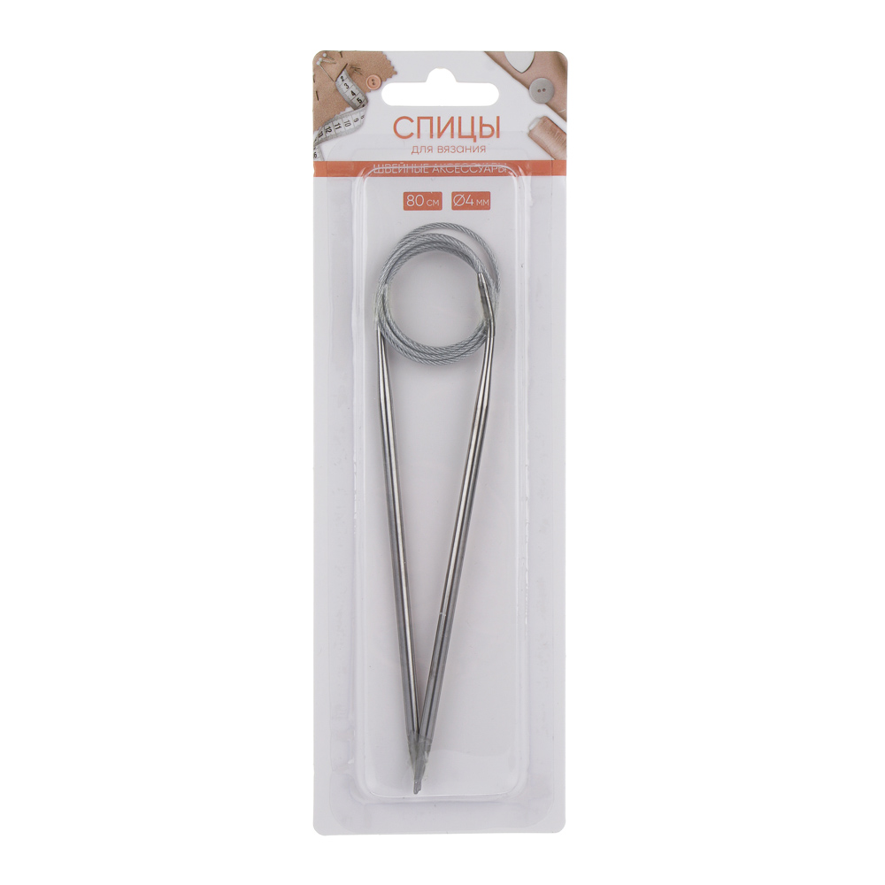 Рукоделие становится популярным трендом: на место дизайнерских аксессуаров и предметов одежды пришли вещи, сделанные собственными руками. Круговые спицы представляют собой две металлические части, соединённые друг с другом тросиком. Инструмент незаменим при вязании полотна по кругу. С его помощью получаются изделия без дополнительных швов: шапки, рукава и горловины. Общая длина от кончика одной спицы до кончика второй, включая длину троса, — 80 см.