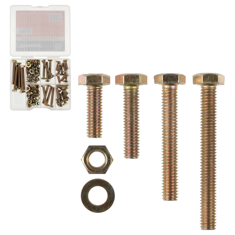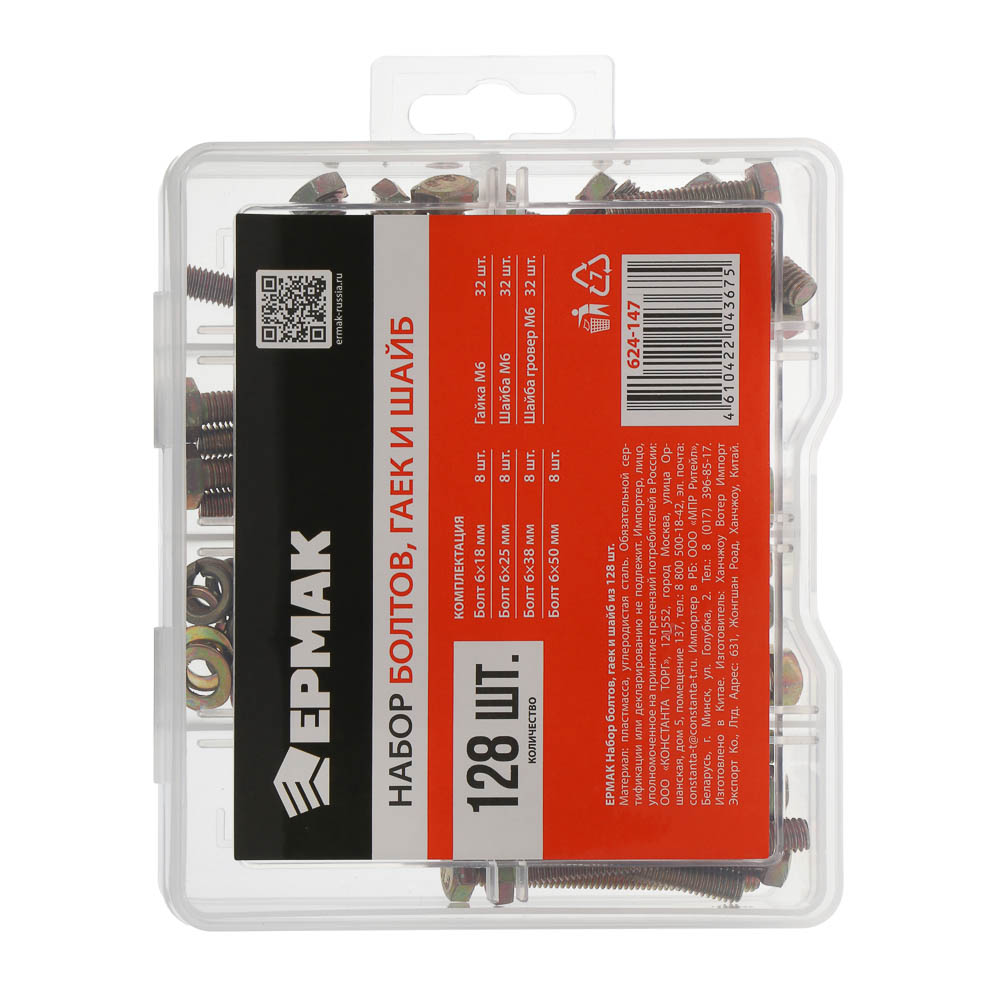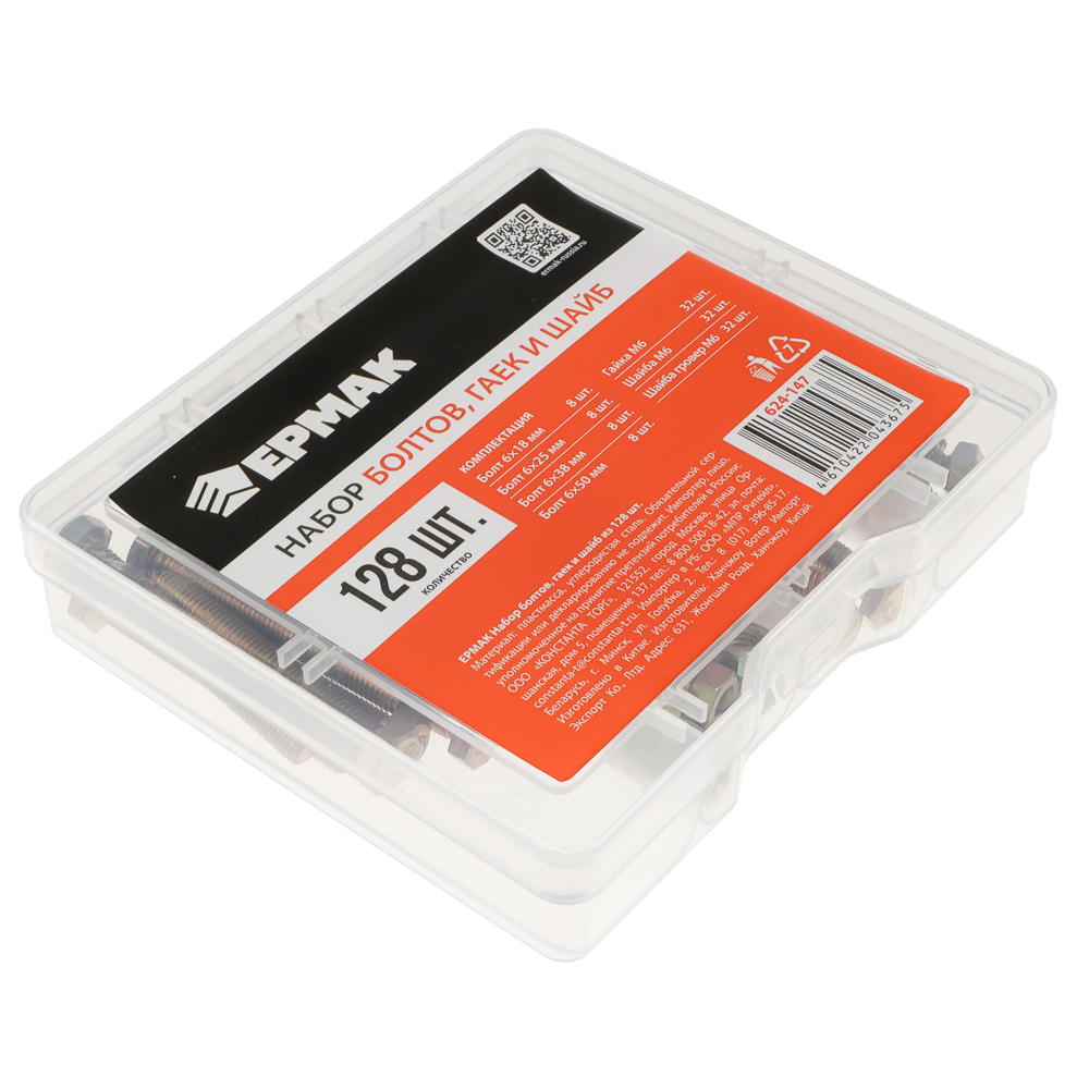 Набор крепежных элементов ЕРМАК — это готовое решение для бытового ремонта, монтажных работ и технического обслуживания. В комплекте собраны самые востребованные размеры болтов и комплектующих, что избавляет от необходимости подбирать элементы по отдельности. В набор входят болты разной длины, а также гайки, плоские и пружинные шайбы (гровер) для полного комплектования соединений. Все элементы изготовлены из углеродистой стали и упакованы в удобный пластиковый органайзер для хранения. Крепежные элементы отличаются точностью геометрии и устойчивостью к коррозии. Продуманная компоновка набора экономит время на поиск деталей и обеспечивает порядок в мастерской. Набор предназначен для монтажа мебели, бытовой техники, заборов и решения других задач.