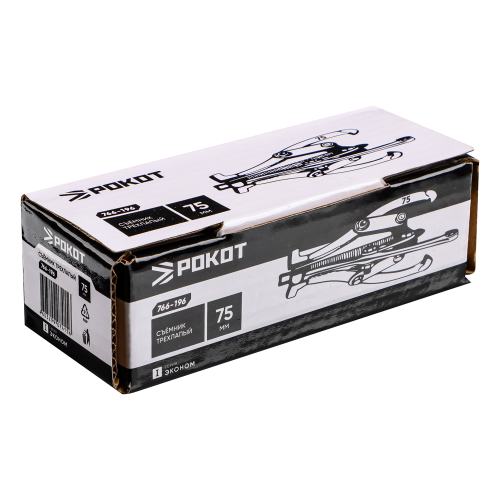 Съемник трехлапый РОКОТ, 75 мм – это надежный инструмент для демонтажа запрессованных деталей – наружных подшипников, снятия шестерен с валов и шкивов. Имеет прочный и долговечный стальной корпус и три захвата. Обеспечивает бережный демонтаж деталей, исключая их деформацию. Выдерживает значительные нагрузки.