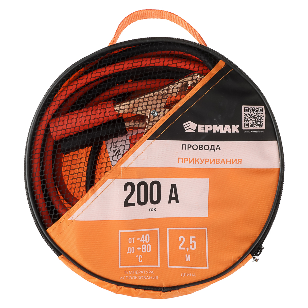 Провода-прикуриватели тм ЕРМАК предназначены для аварийного запуска двигателя автомобиля при разряженном аккумуляторе. Сила тока 200 А обеспечивает быструю и надежную передачу энергии, позволяя безопасно запускать легковые и малые грузовые автомобили. Длина 2,5 м обеспечивает удобство подключения к аккумулятору соседнего автомобиля, даже если он находится на расстоянии.