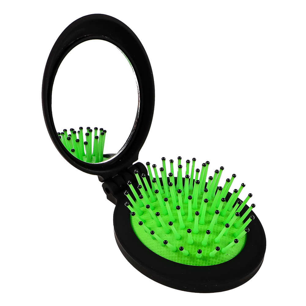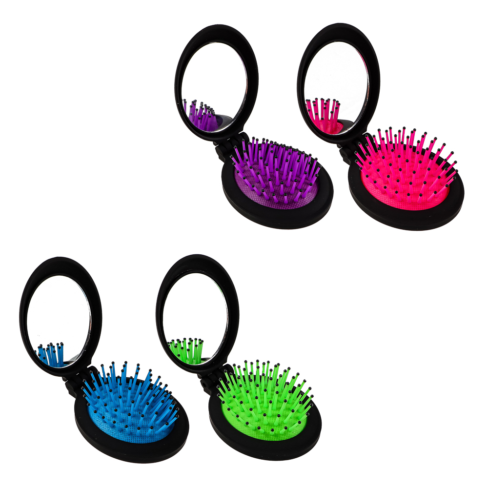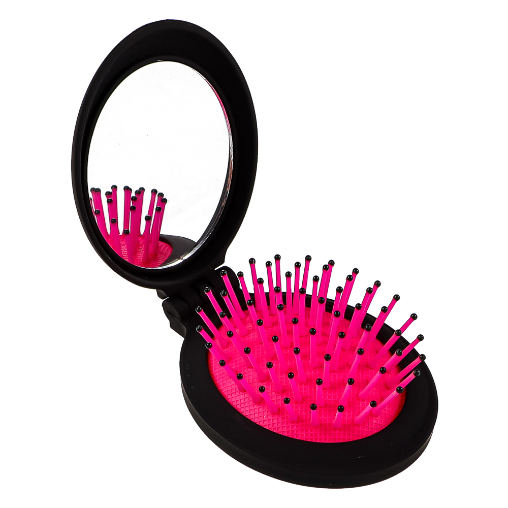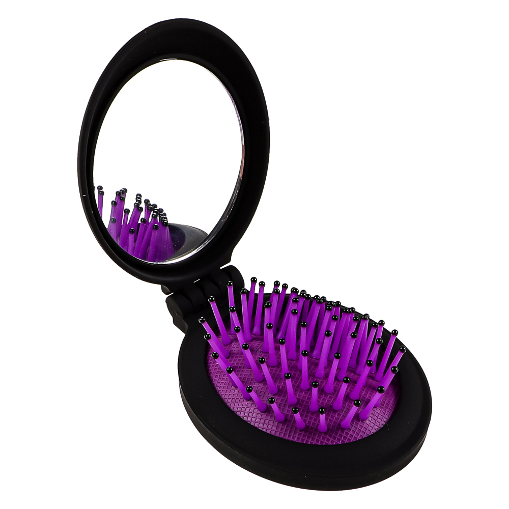 Маленькая складная расческа для волос с зеркалом ЮниLook - удобный и практичный аксессуар для ухода за волосами. Благодаря своему небольшому размеру, расческа легко поместится в любую дамскую сумочку, а также прекрасно подойдет, чтобы взять ее с собой в путешествие. Данная расческа мягкая и имеет закругленные кончики, что позволяет бережно и эффективно расчесывать волосы. А благодаря зеркалу, Вы всегда и в любом месте сможете поправить макияж и прическу - дома, в офисе, в путешествии. Расческа обладает массажным эффектом, что полезно для кожи головы. Материал: пластик, стекло. Размер: 6х8 см. В ассортименте 4 цвета.